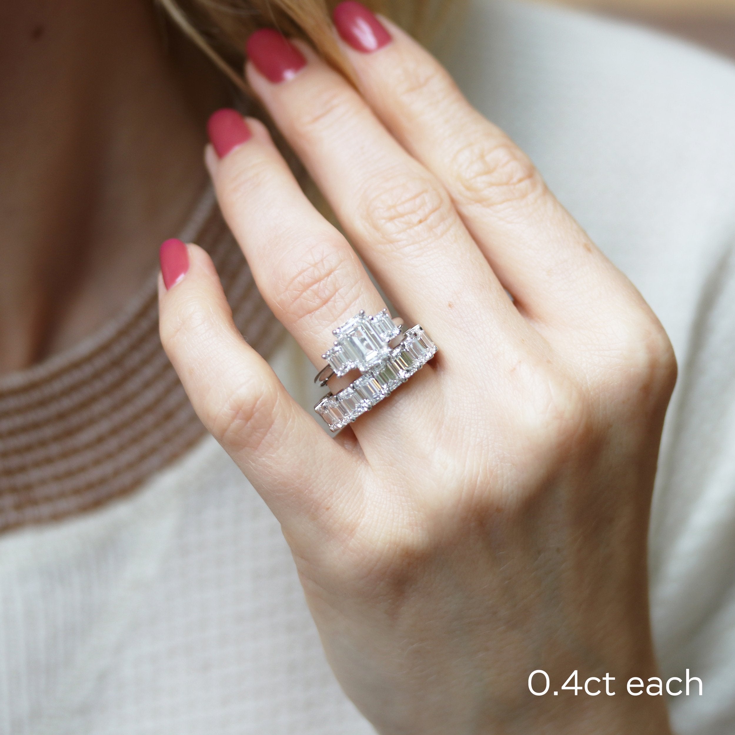 – Elegant, elongated emerald cuts with mirror-like facets