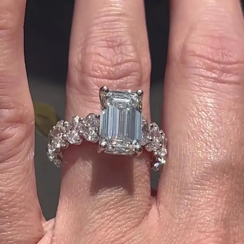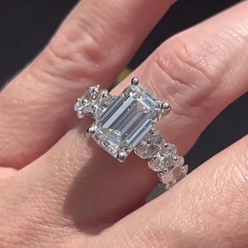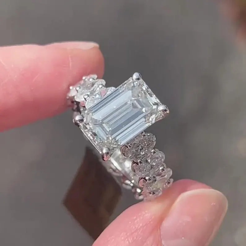 ✔ Massive 5.00ct Emerald-Cut Center – Elegant and bold centerpiece