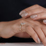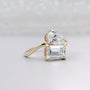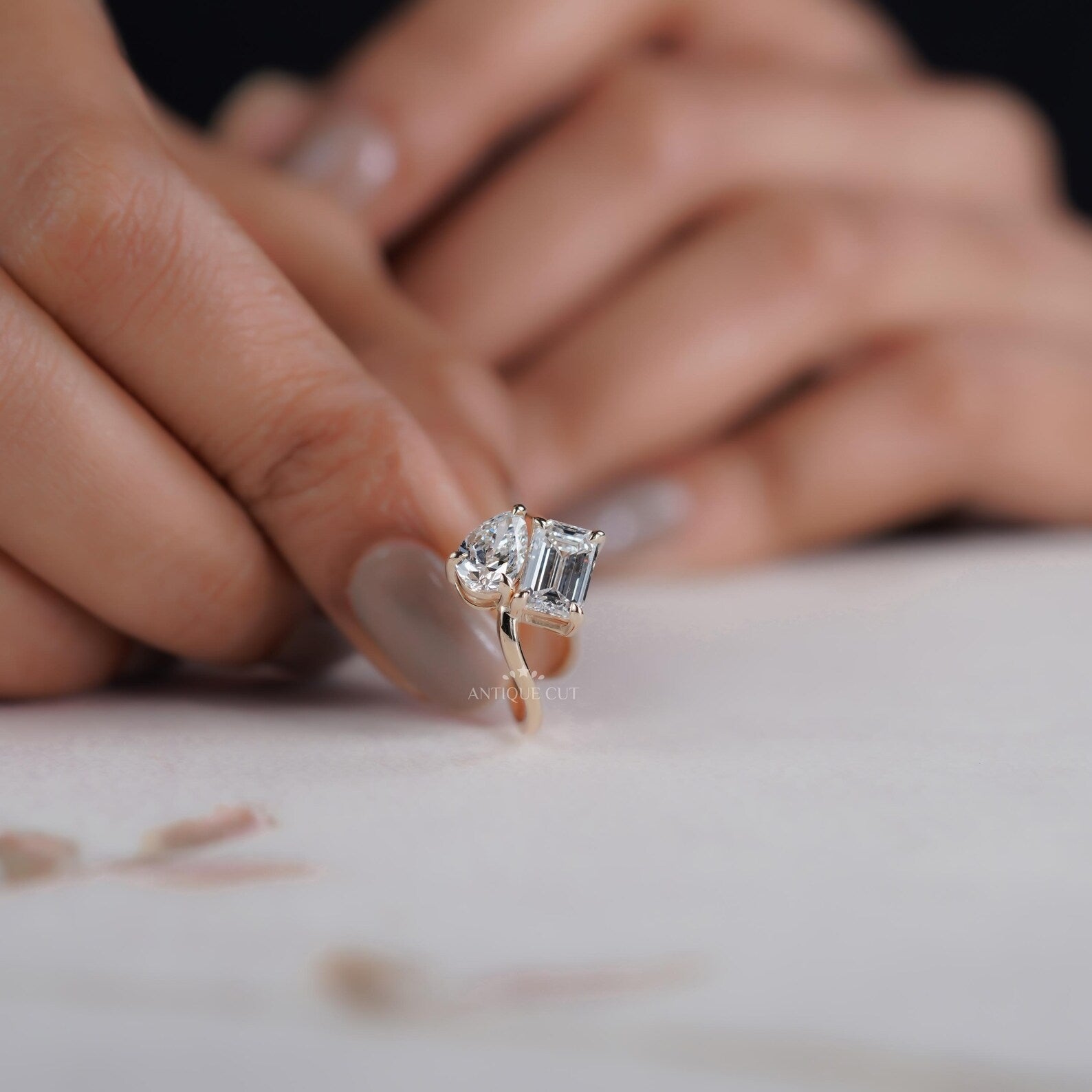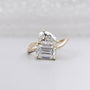 A refined 2.50tcw Toi et Moi ring featuring a 1.55ct Emerald-cut diamond paired with a 0.95ct Pear-cut diamond. Handcrafted in solid gold, this modern bypass design blends clean lines with soft brilliance. A perfect balance of shape and sparkle.