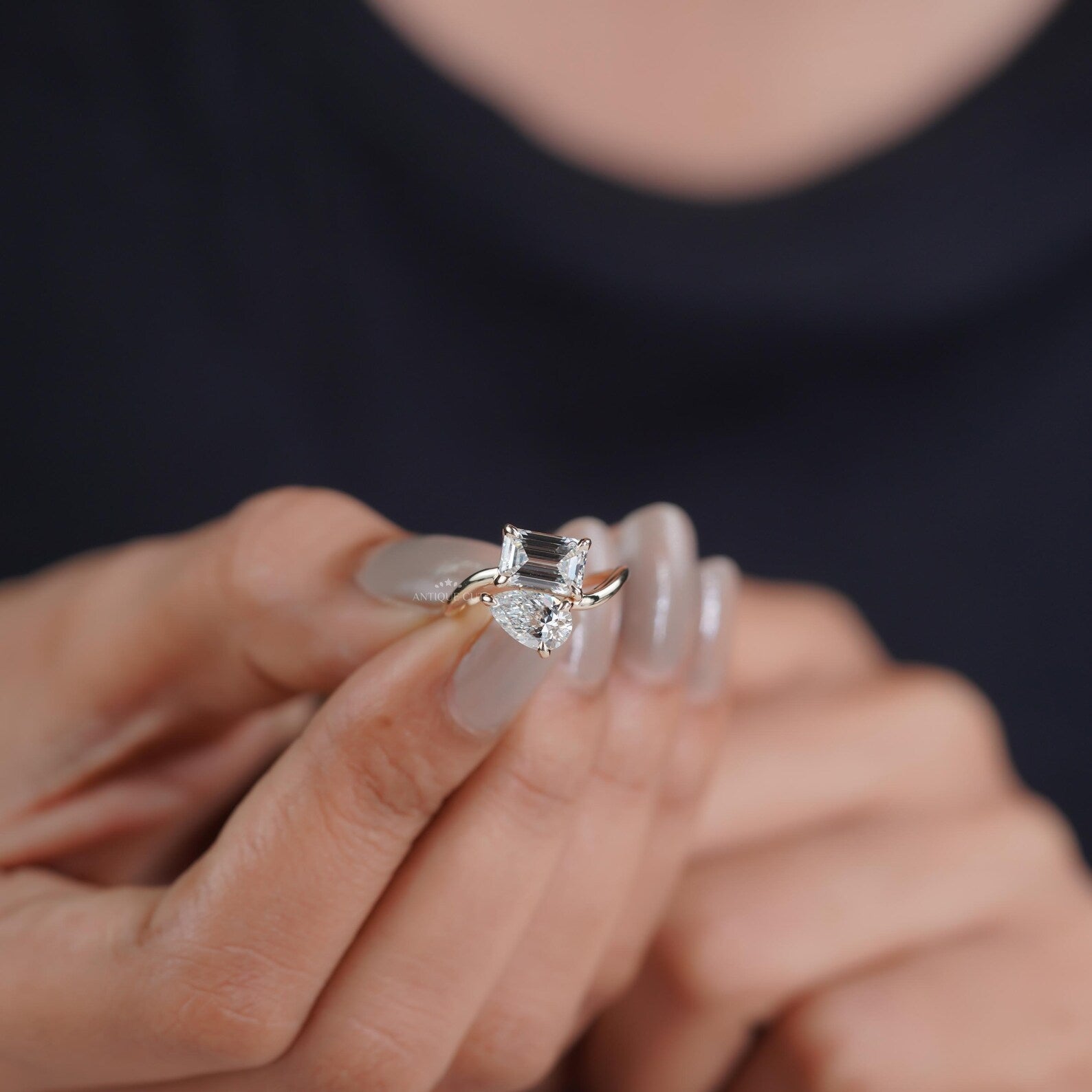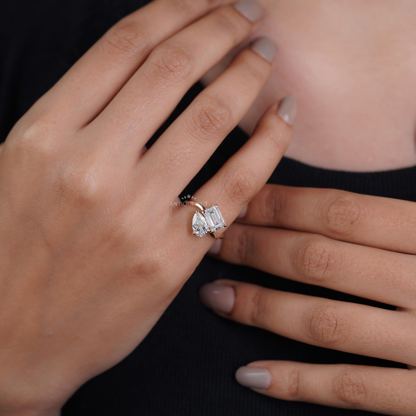 Emerald And Pear 2.50tcw Lab Grown Diamond Bypass Ring | Modern Two-Stone Toi Et Moi | D–F Color | VVS–VS Clarity