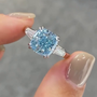 • 3.00ct Fancy Blue cushion-cut center with rare brilliance