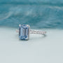 Fancy Blue 2.40tcw Emerald Cut Lab Diamond Engagement Ring | IGI Certified | White Gold Pave Setting