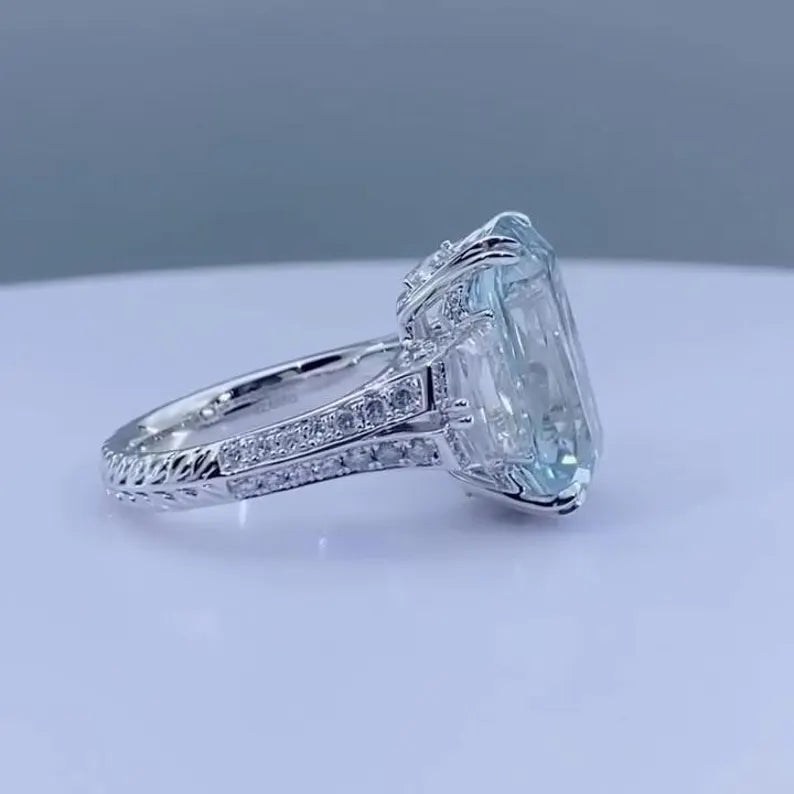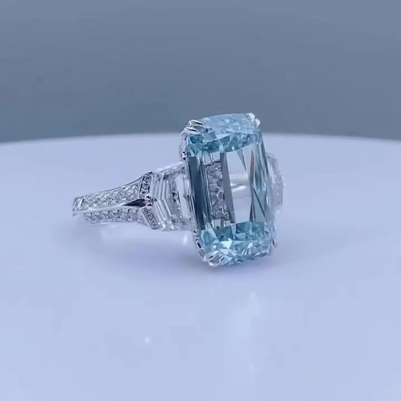 ✨ Unique Fancy Blue emerald-cut center for a bold statement