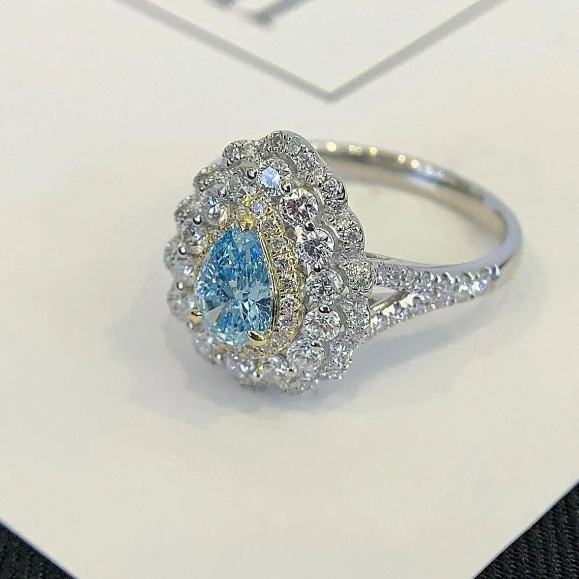 ✔ Rare Fancy Blue pear-cut center stone – 0.70ct brilliance