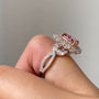 Fall in love with this 3.50tcw Fancy Pink Lab-Grown Diamond Ring featuring a radiant 1.50ct center framed by a striking 2.00ct double halo. Meticulously crafted in two-tone white and rose gold, this floral-inspired masterpiece combines artistic elegance with modern luxury. The IGI-certified fancy pink center diamond is beautifully complemented by round and pear-shaped side stones for unmatched brilliance and depth. A perfect choice for unforgettable proposals and luxury milestones.