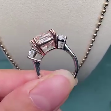 Fancy Pink 7.00tcw Lab Diamond 3-Stone Engagement Ring | 5ct Cushion Center + 2ct Side Stones | IGI Certified