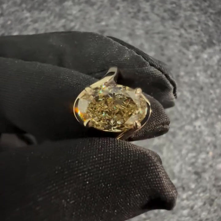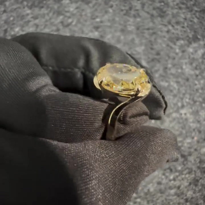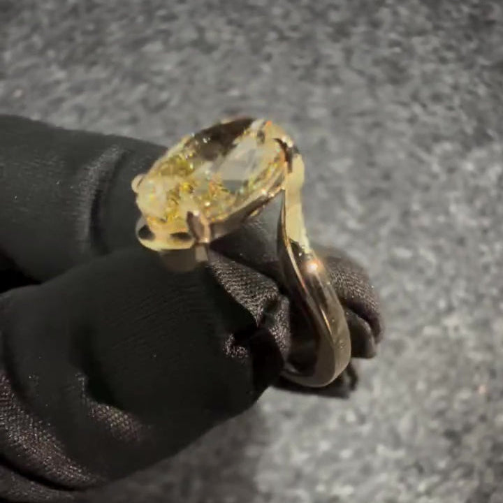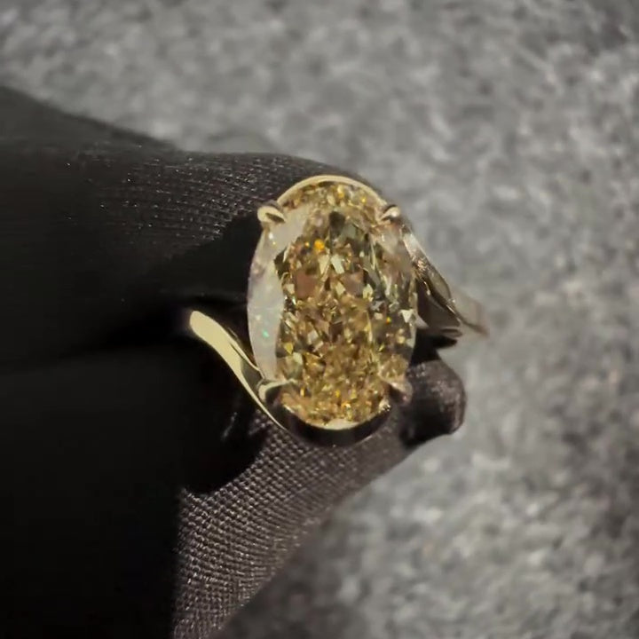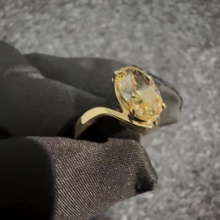 Make a statement with this 3.00ct Fancy Yellow Oval Lab-Grown Diamond Solitaire Ring. Set in a bold yellow gold bypass-shank band, this VVS–VS clarity diamond radiates rich warmth and striking brilliance. Sleek, sculpted, and minimal, this IGI-certified treasure offers modern elegance and sustainable luxury — ideal for standout engagements or unforgettable gifts.