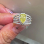 A stunning 3.00tcw lab-grown diamond ring featuring a vibrant 1.50ct fancy yellow pear-shaped center diamond and 1.50ct total of pavé round side stones. The multi-row split shank design adds maximum sparkle and dimension, crafted in elegant white gold with contrasting yellow prongs for a refined finish. This IGI-certified ring is handcrafted to perfection, offering an eco-conscious and luxurious choice for engagement, anniversary, or any special occasion.