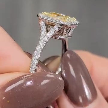 Fancy Yellow 4.00tcw Radiant Lab Diamond Halo Ring | Halo Setting | IGI Certified | VVS–VS Clarity