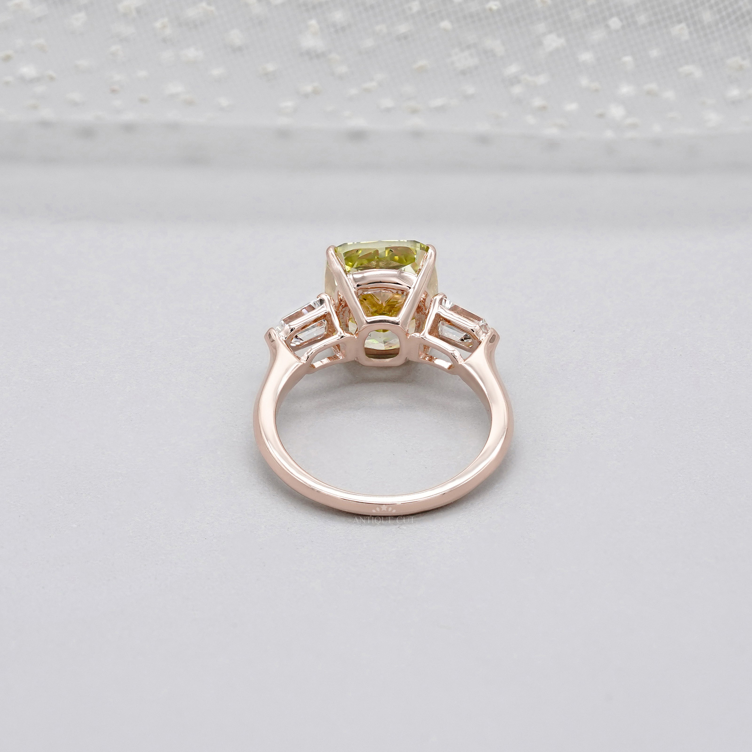 Fancy Yellow 6.50tcw Cushion Cut Lab Diamond Ring | Rose Gold Three-Stone | IGI Certified