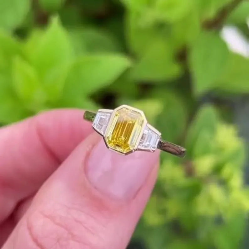 ✨ Rare Fancy Yellow emerald-cut diamond for a standout design