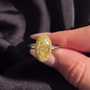 • Surrounded by a 0.30ct yellow pavé halo for rich brilliance.