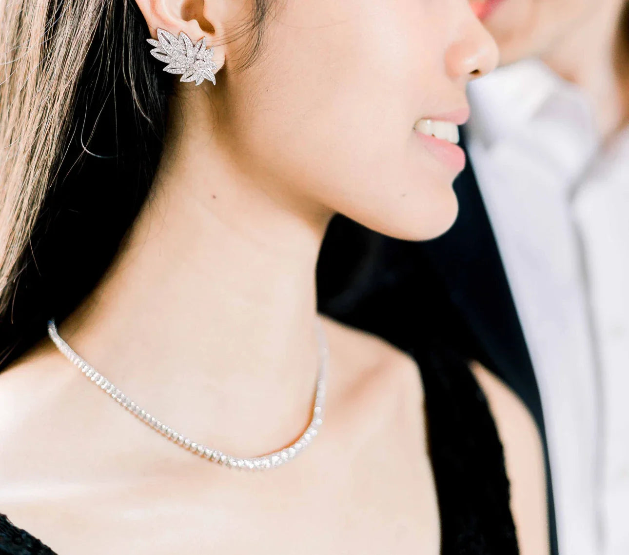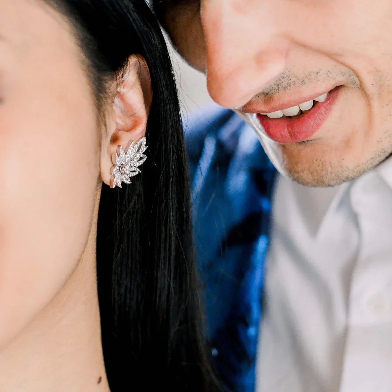 Round Lab Grown Dimaond Feather Earring Jackets, EF Color, VS Clarity, IGI Certified