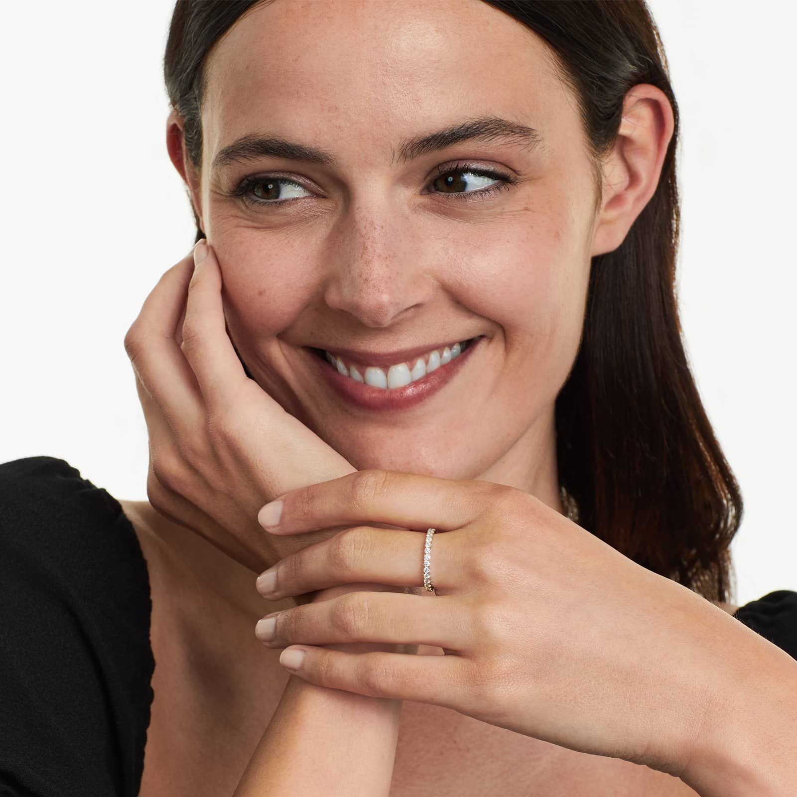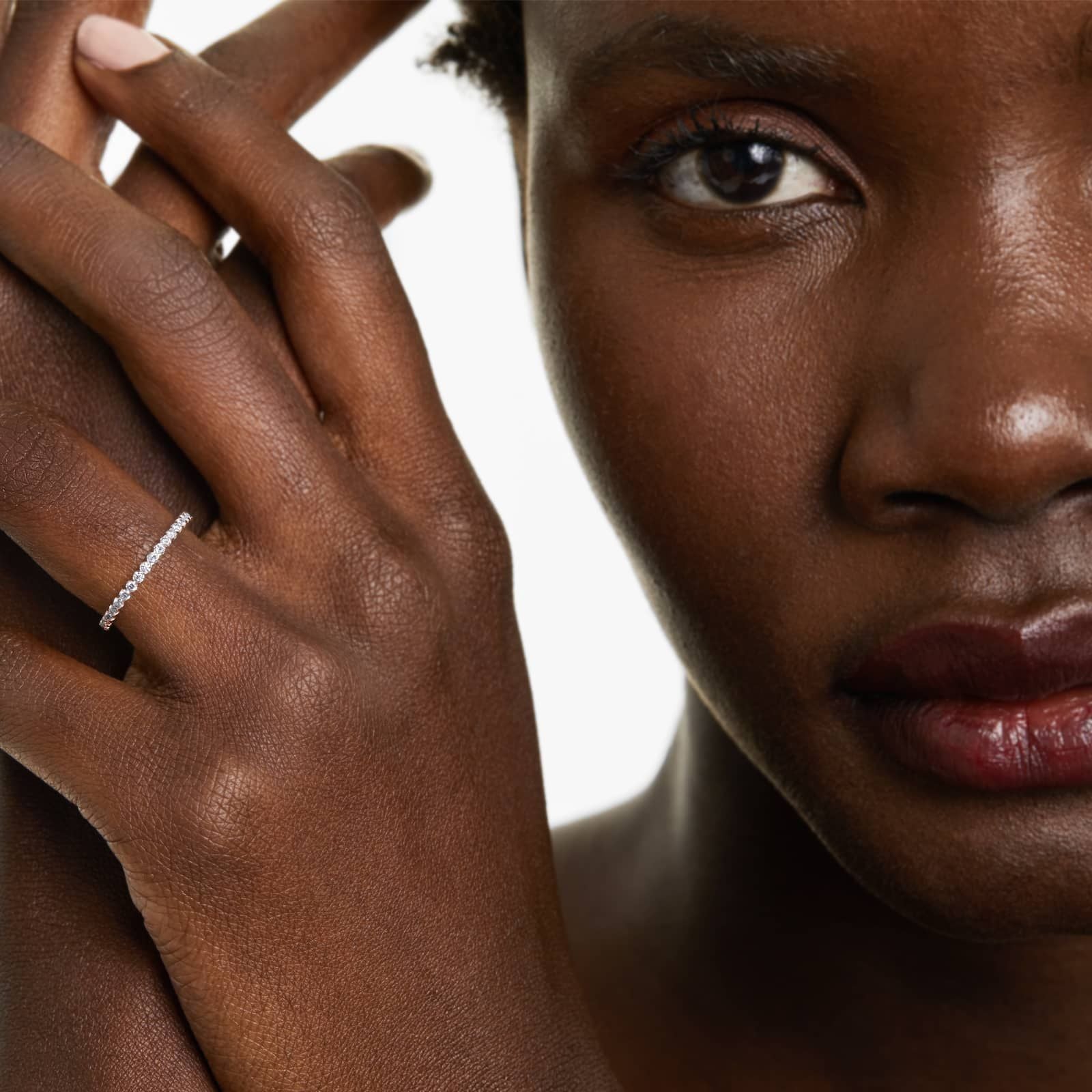 This exquisite fishtail eternity ring features beautiful lab-grown diamonds with EF color and VS clarity, offering exceptional brilliance and shine. Certified by IGI, this stunning ring is the perfect symbol of eternal love and commitment.