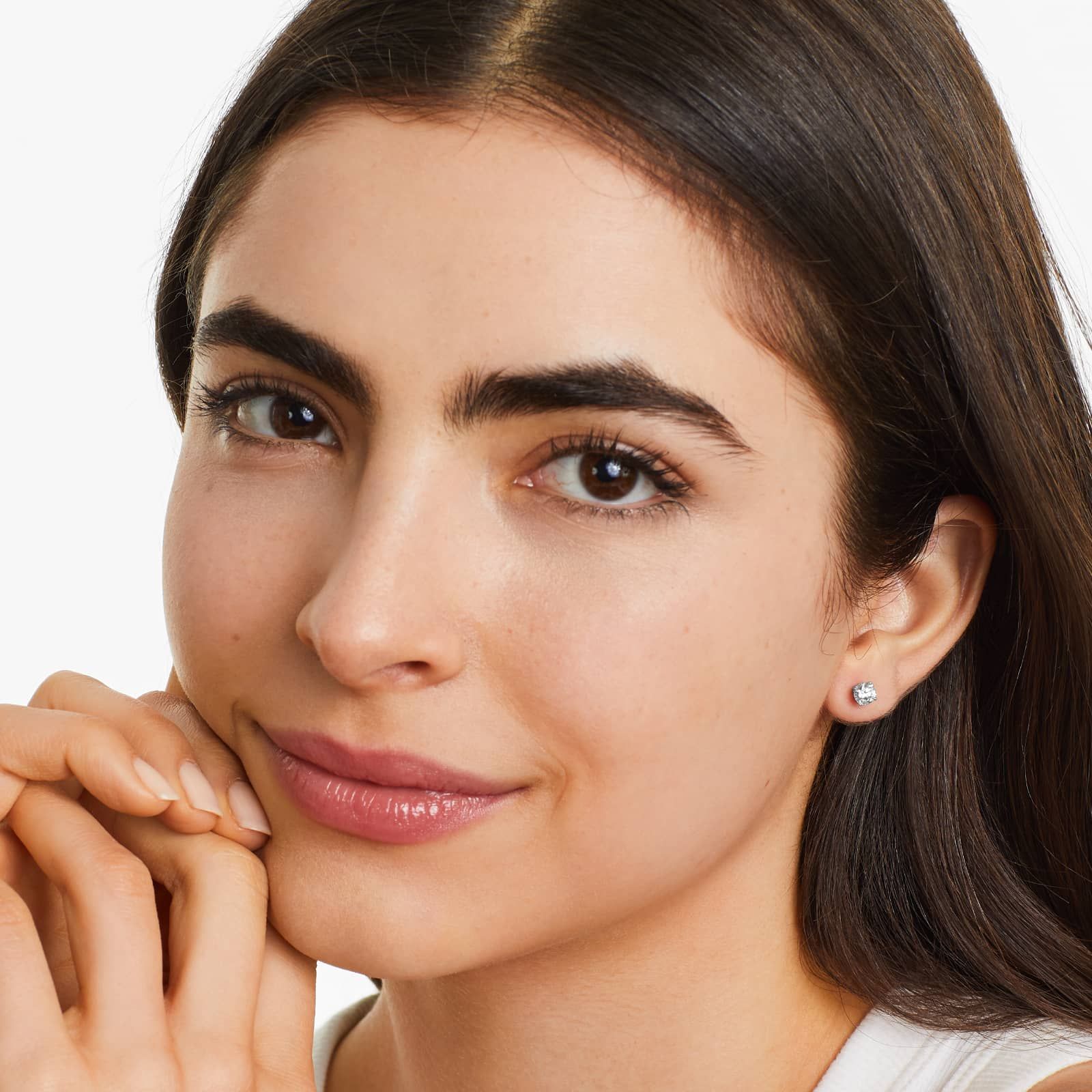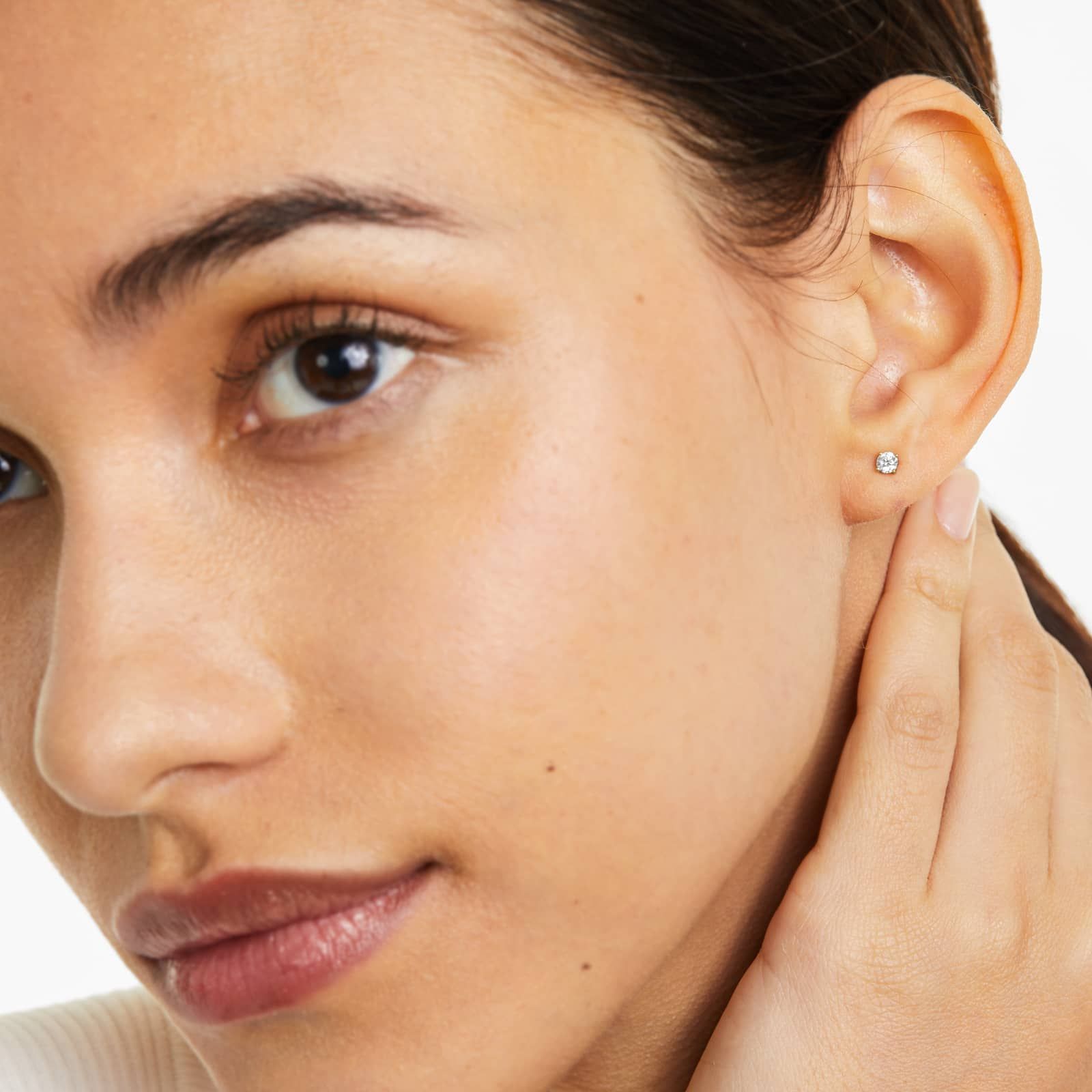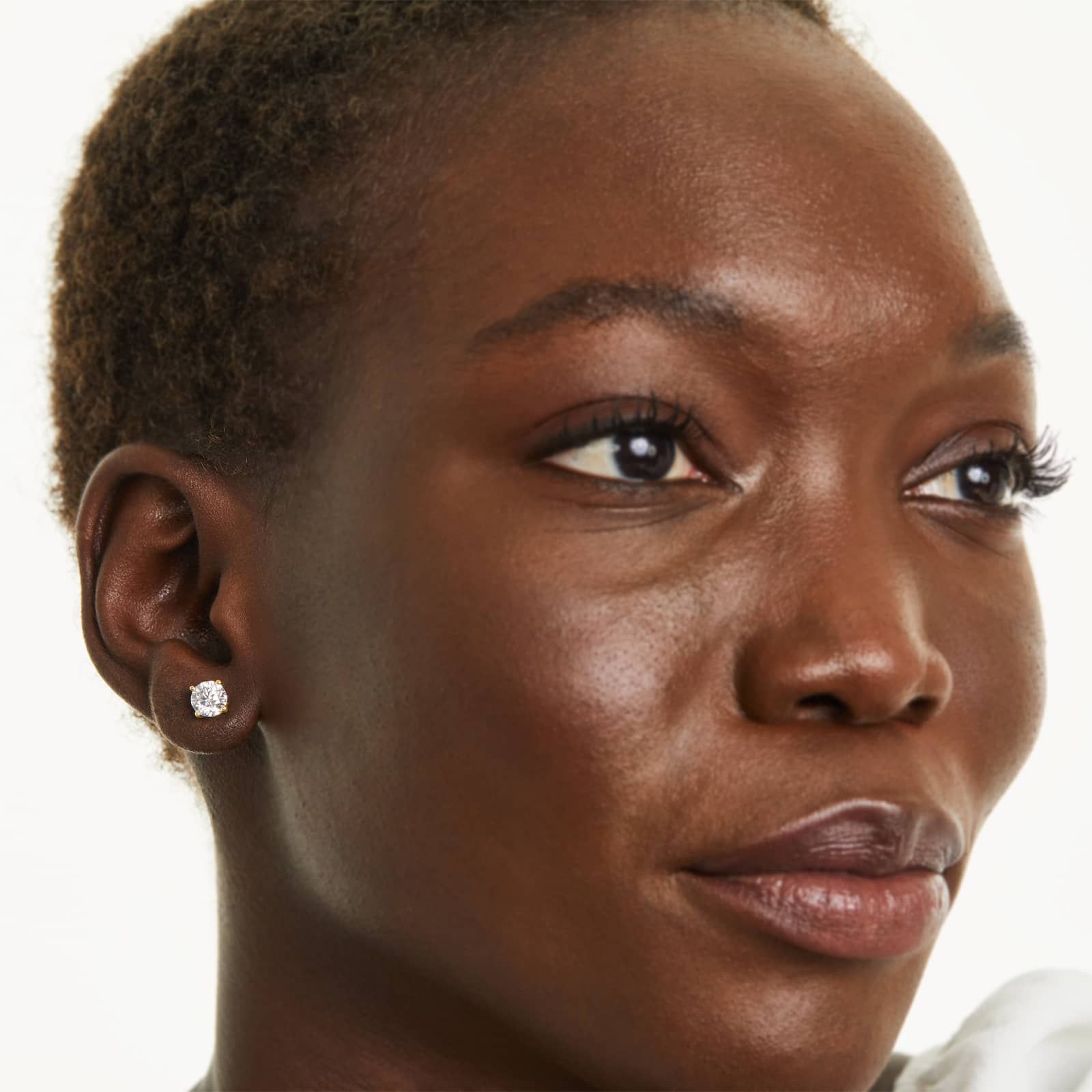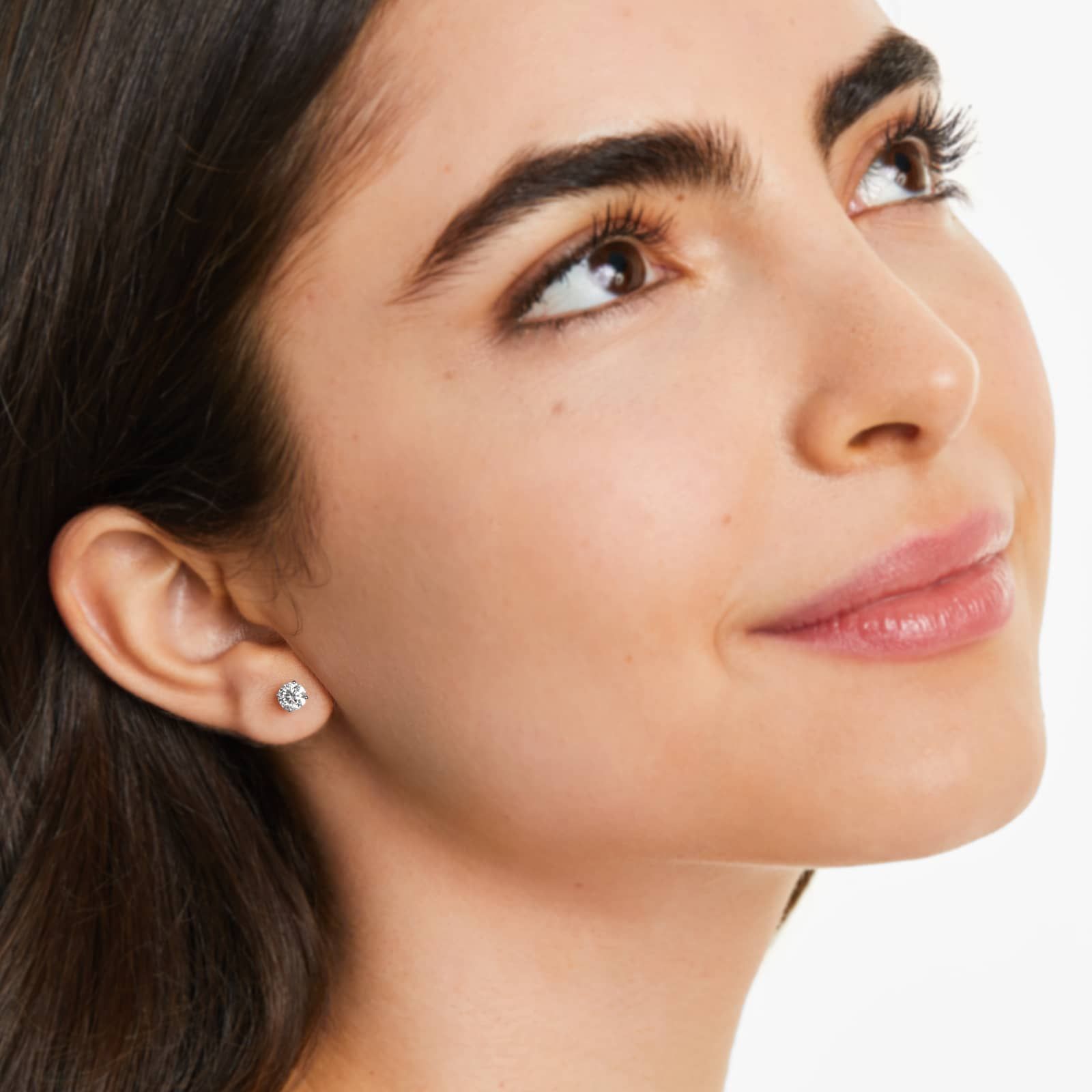Round Lab Grown Diamond Four Prong Stud Solitaire Earrings, EF Color, VS Clarity, IGI Certified