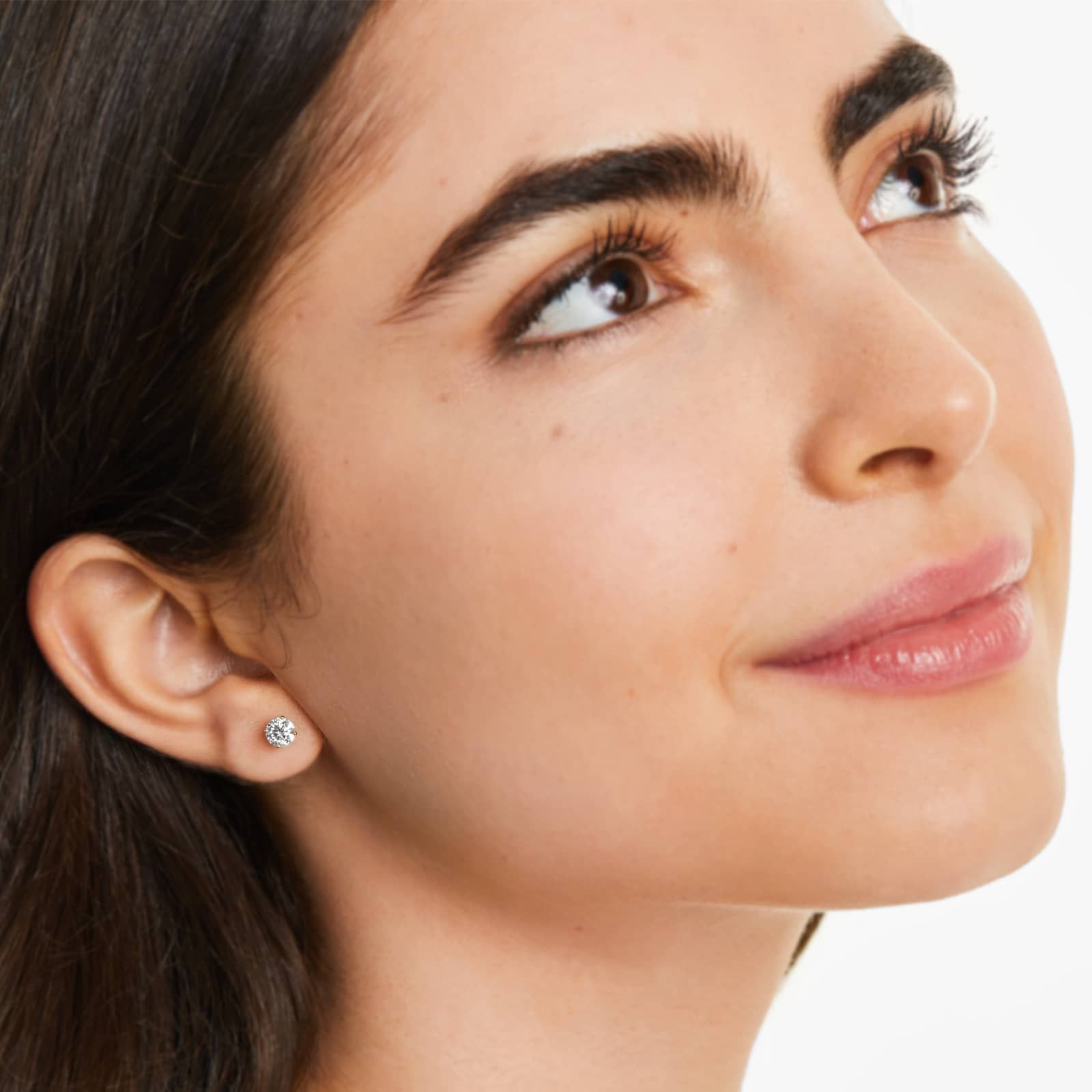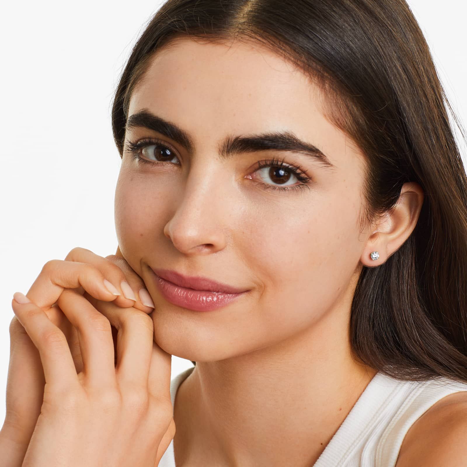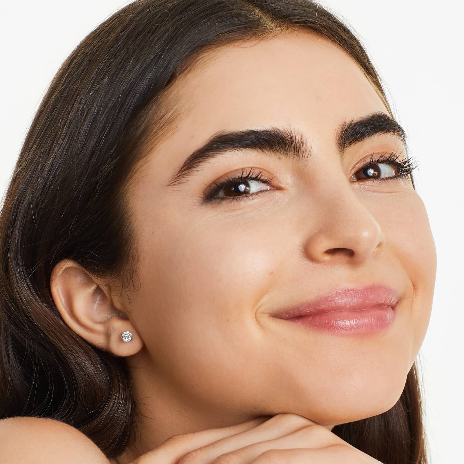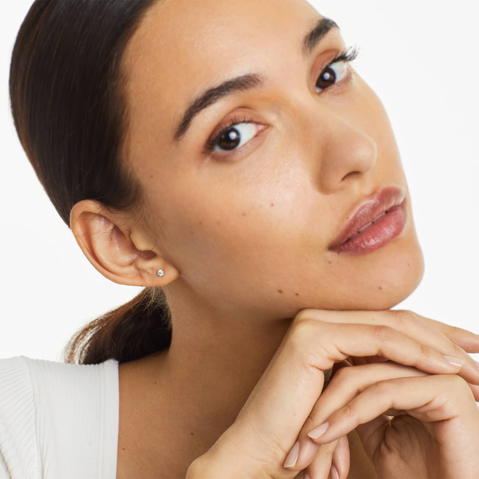 Round Lab Grown Diamond Four Prong Stud Solitaire Earrings, EF Color, VS Clarity, IGI Certified