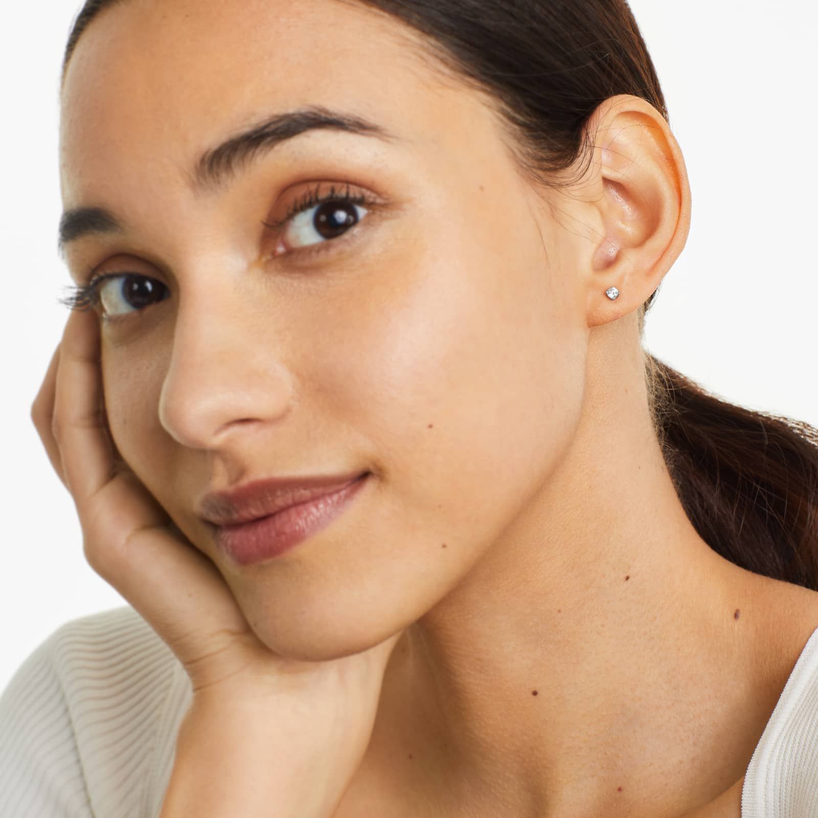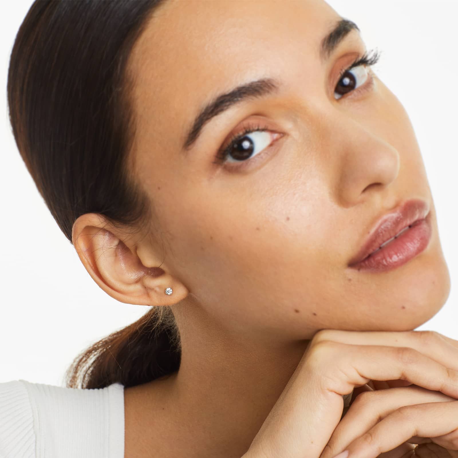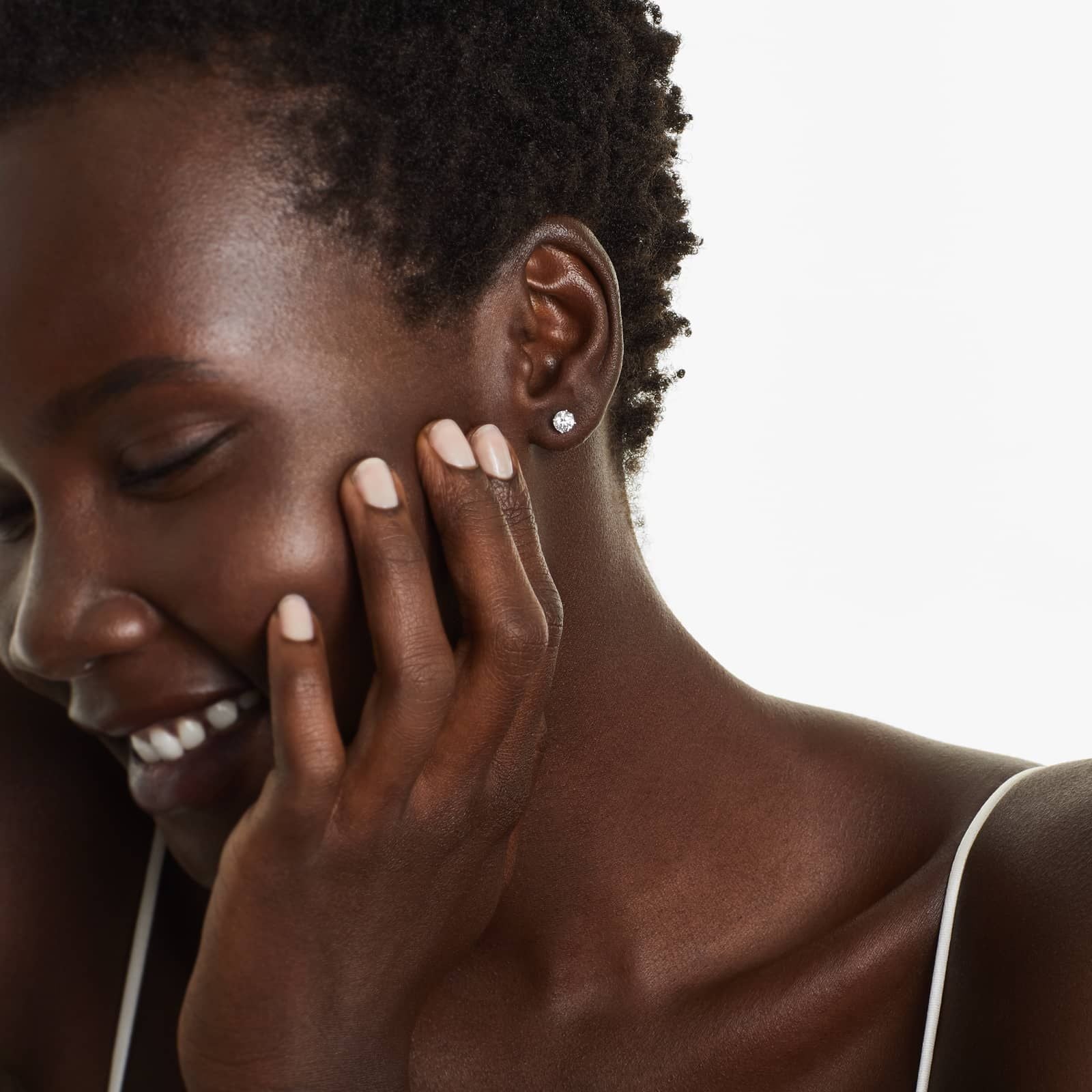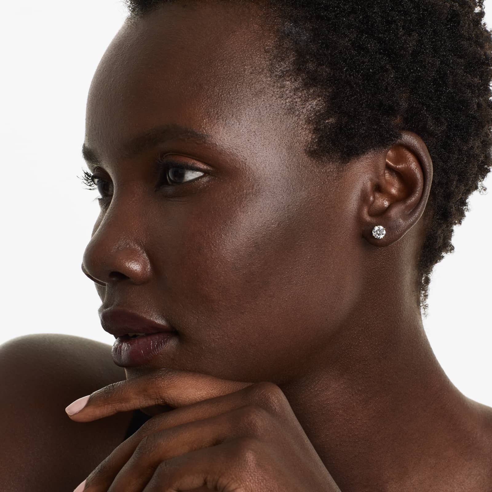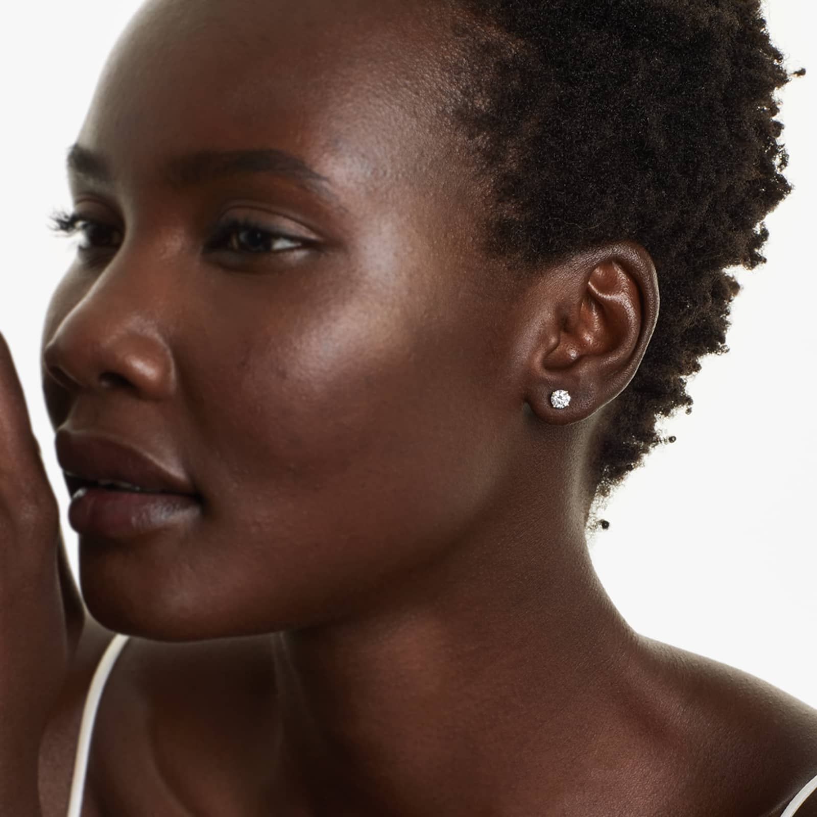 Round Lab Grown Diamond Four Prong Stud Solitaire Earrings, EF Color, VS Clarity, IGI Certified