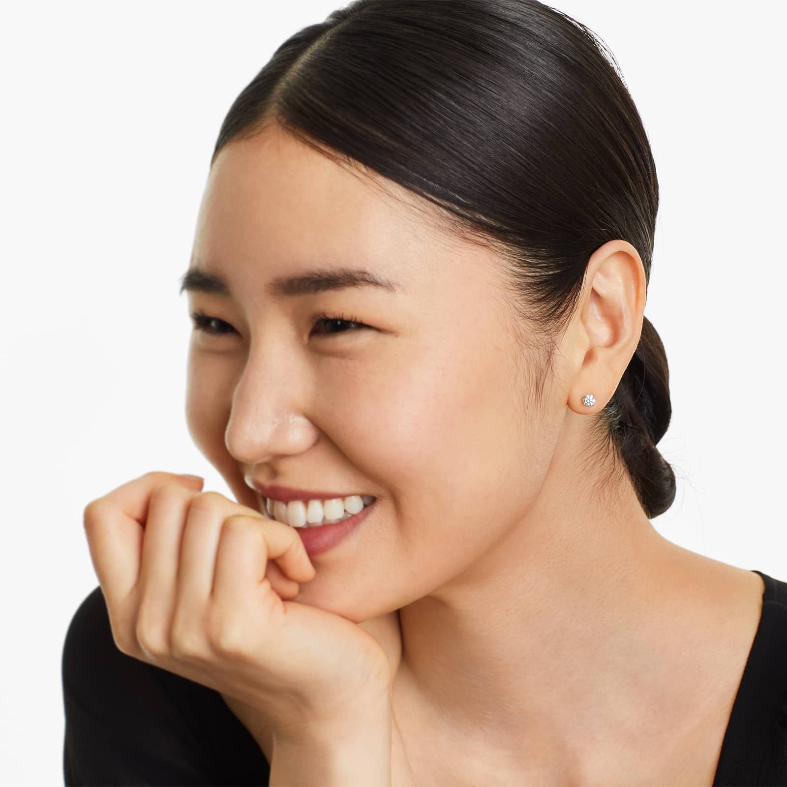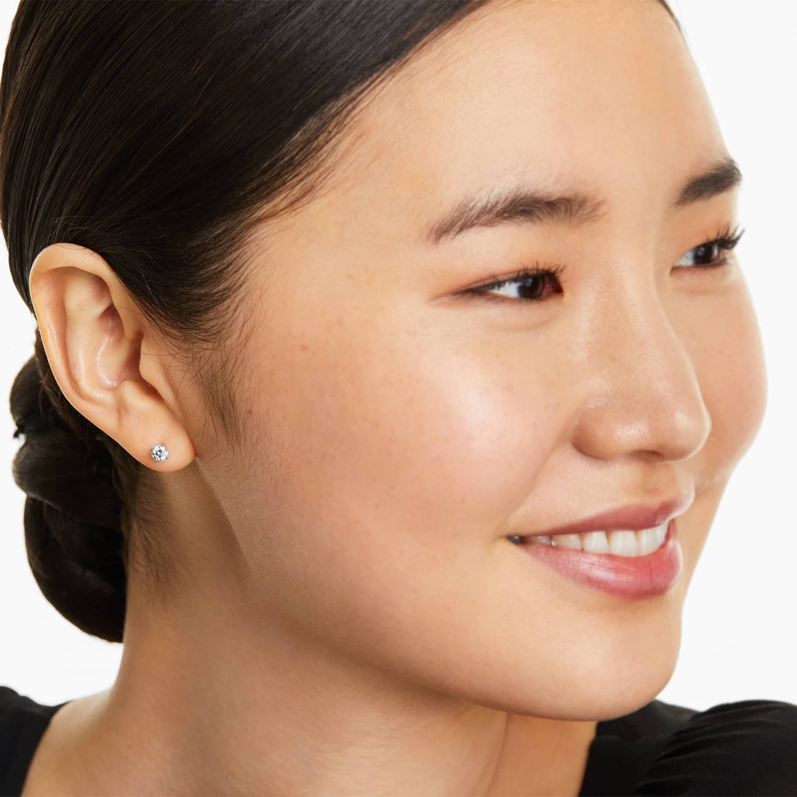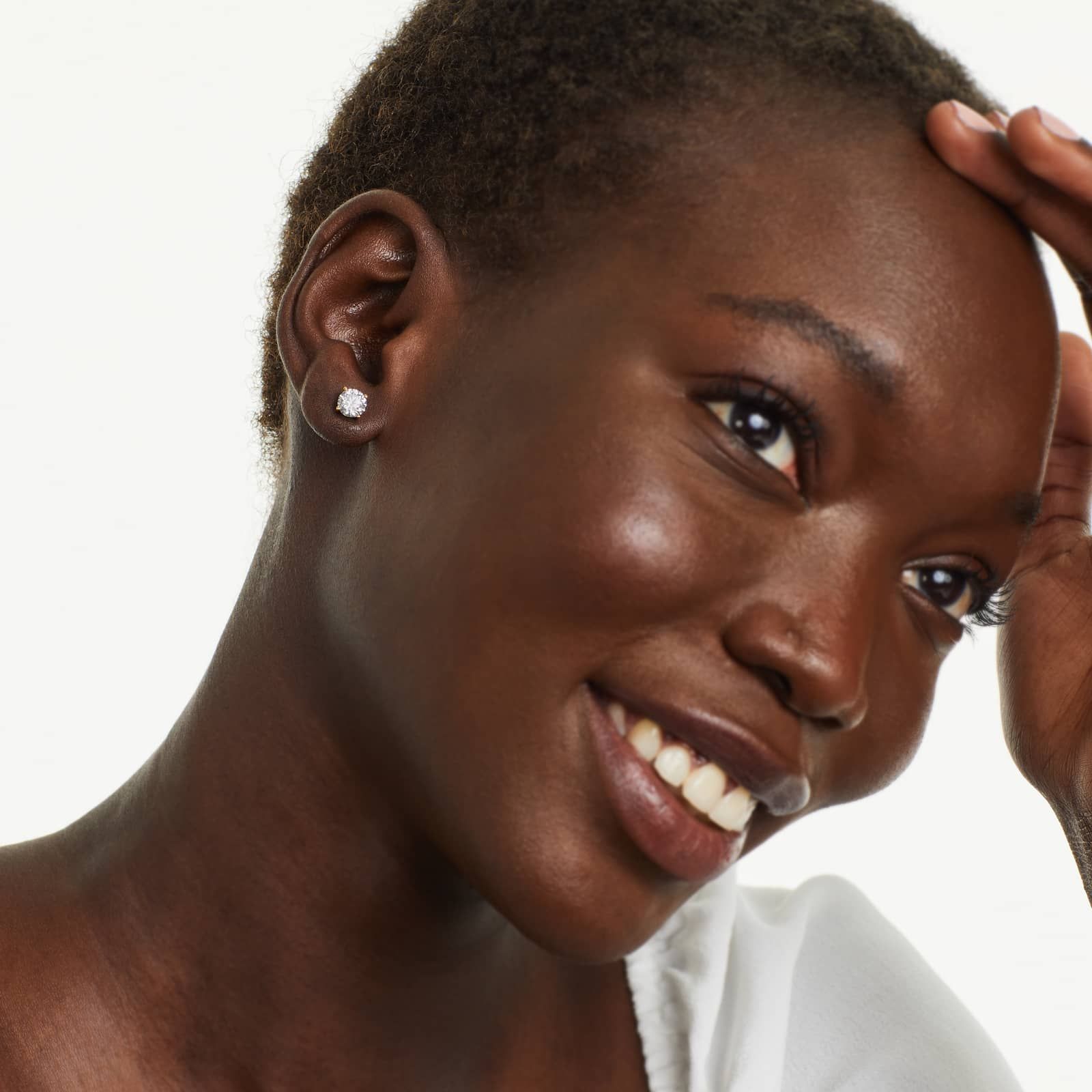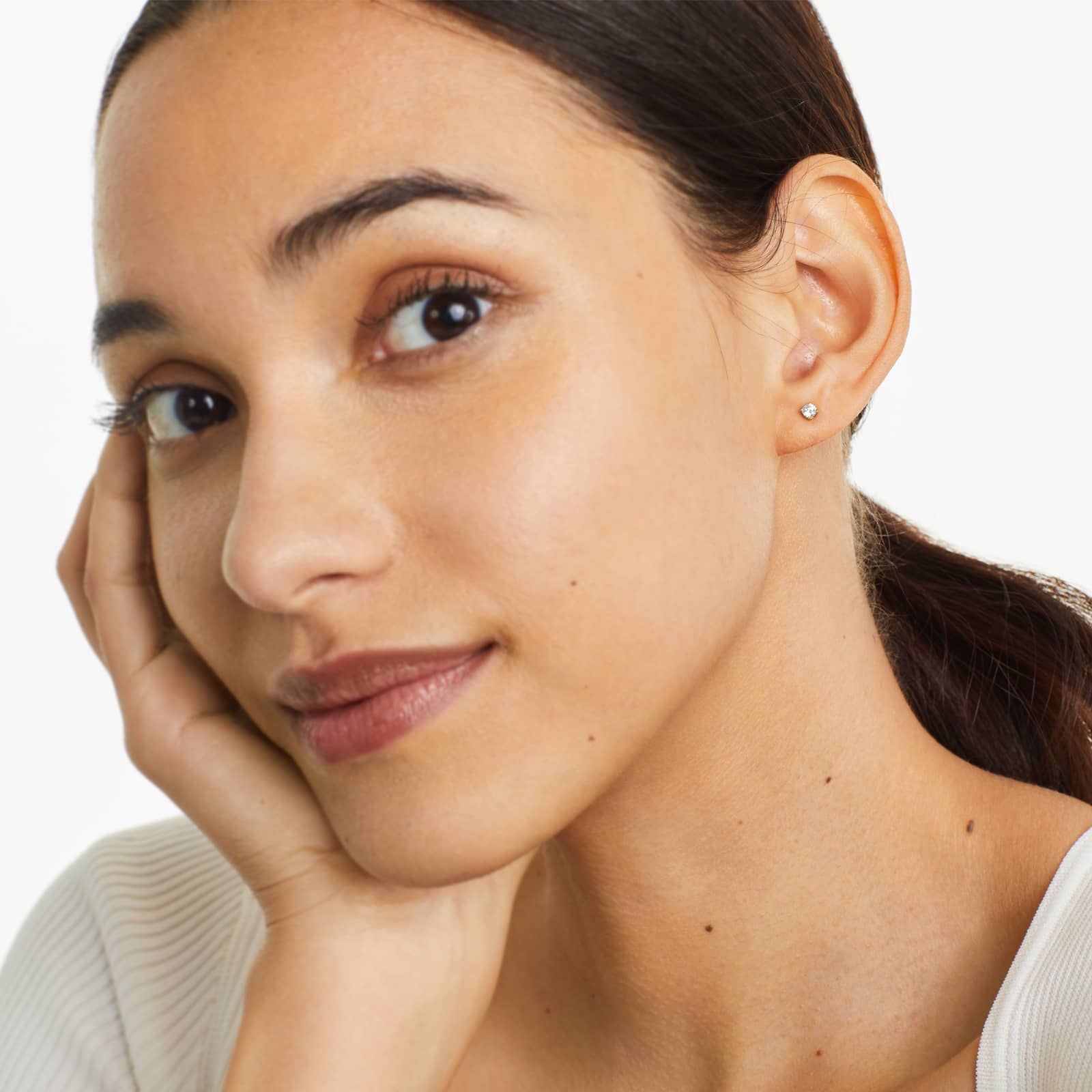 Round Lab Grown Diamond Four Prong Stud Solitaire Earrings, EF Color, VS Clarity, IGI Certified