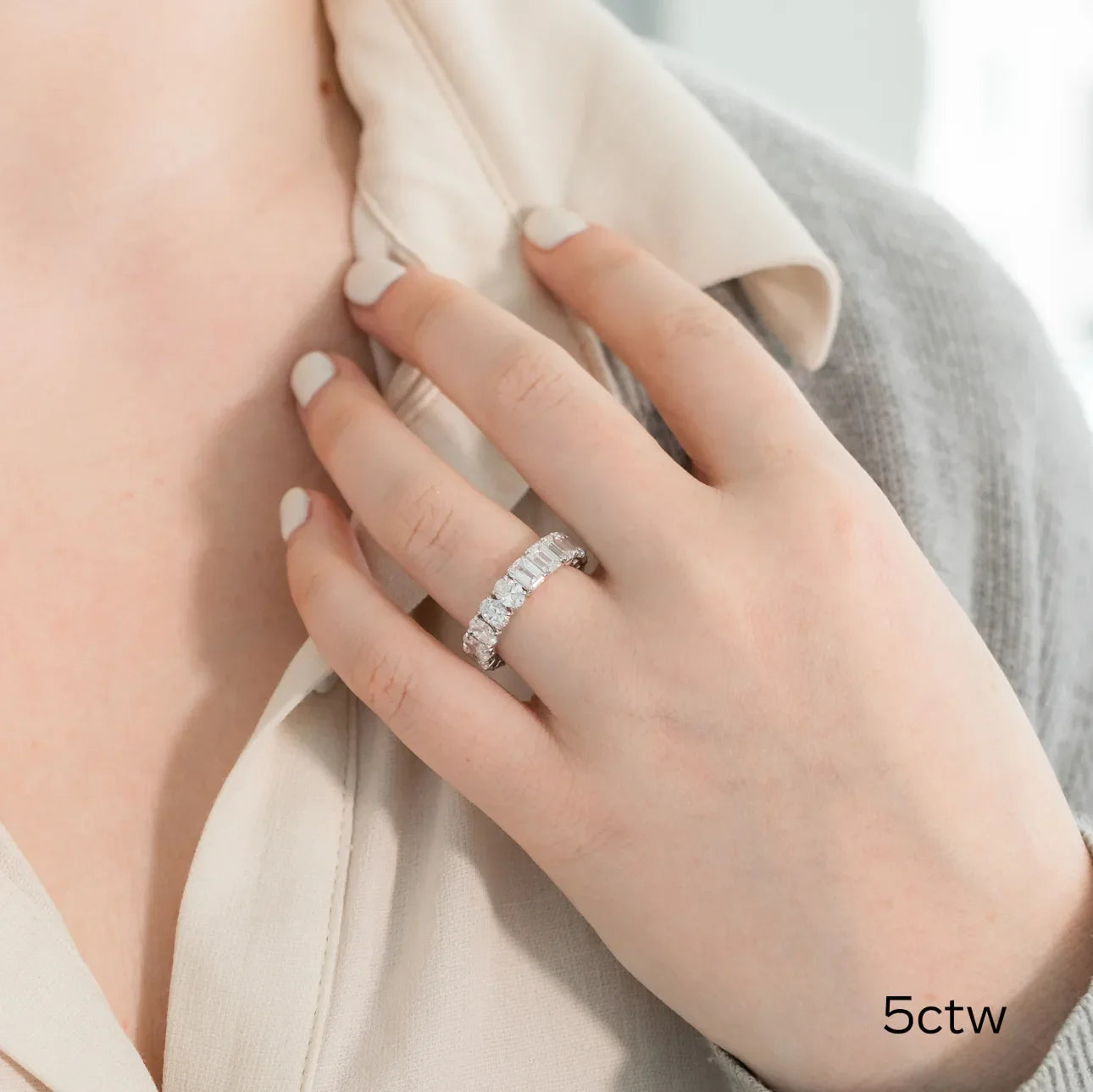 Oval And Emerald Lab Grown Diamond Half and Half Eternity Band , EF Color , VS Clarity , IGI Certificate