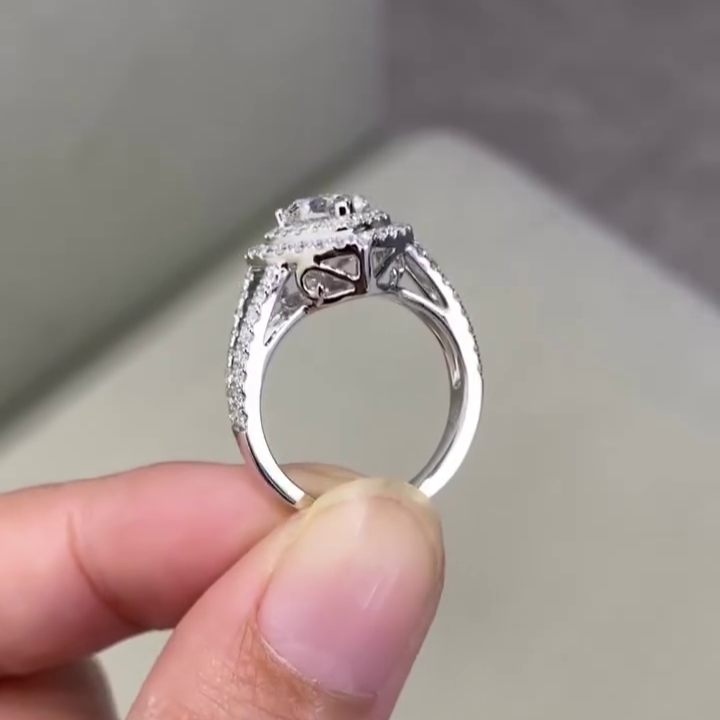 Heart 1.80tcw Lab Grown Diamond Engagement Ring | Double Halo | Split Shank Design | D-E-F Color | VVS–VS Clarity | IGI Certified