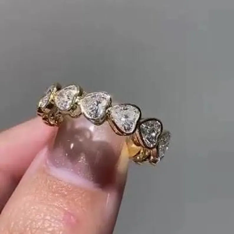 4.20tcw Heart Lab Grown Diamond Ring | Bezel Set Eternity Band | D-E-F Color VVS-VS Clarity | IGI Certified | Custom Gold Engagement Ring