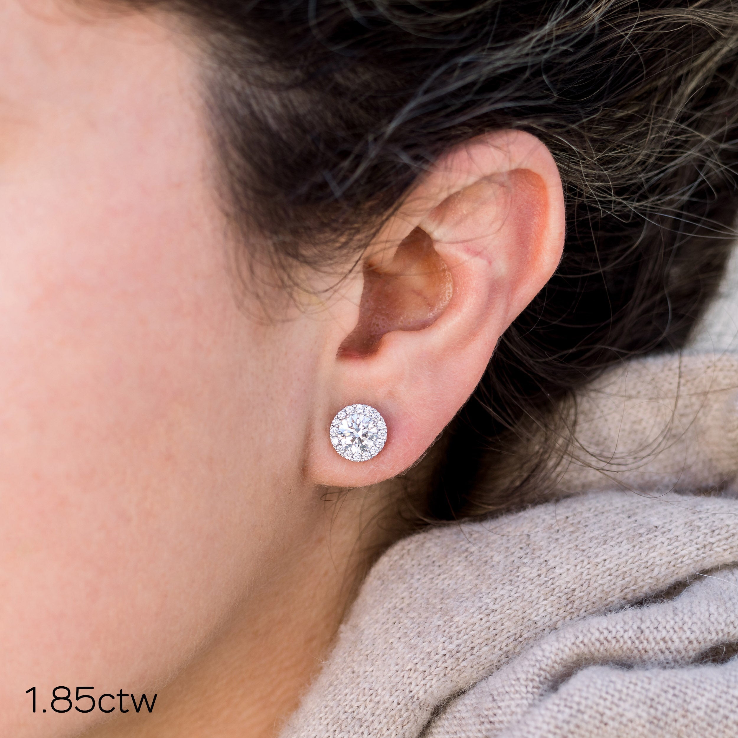 Heavenly single halo Round Lab grown Diamond Stud Earrings, EF Color, VS Clarity, IGI Certified