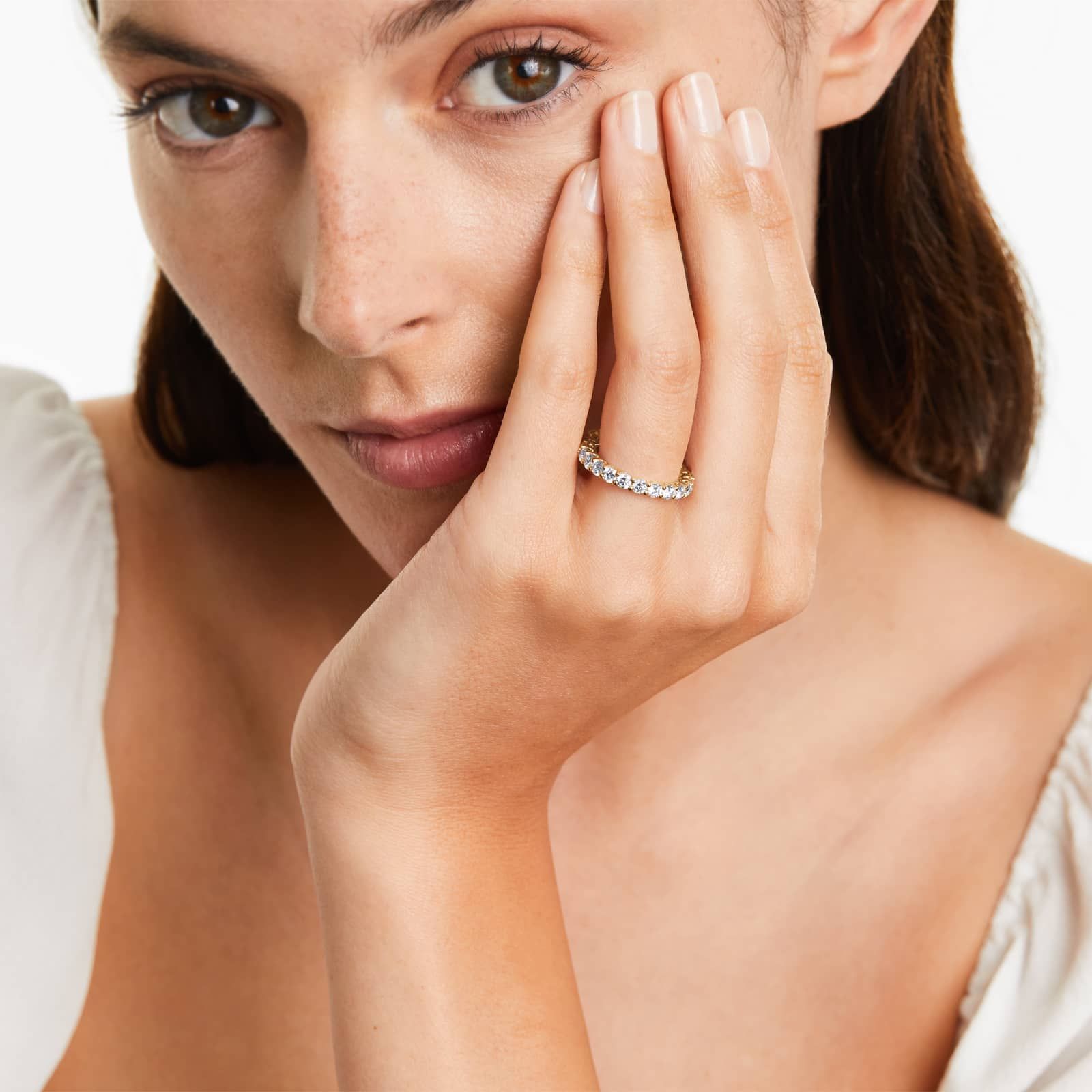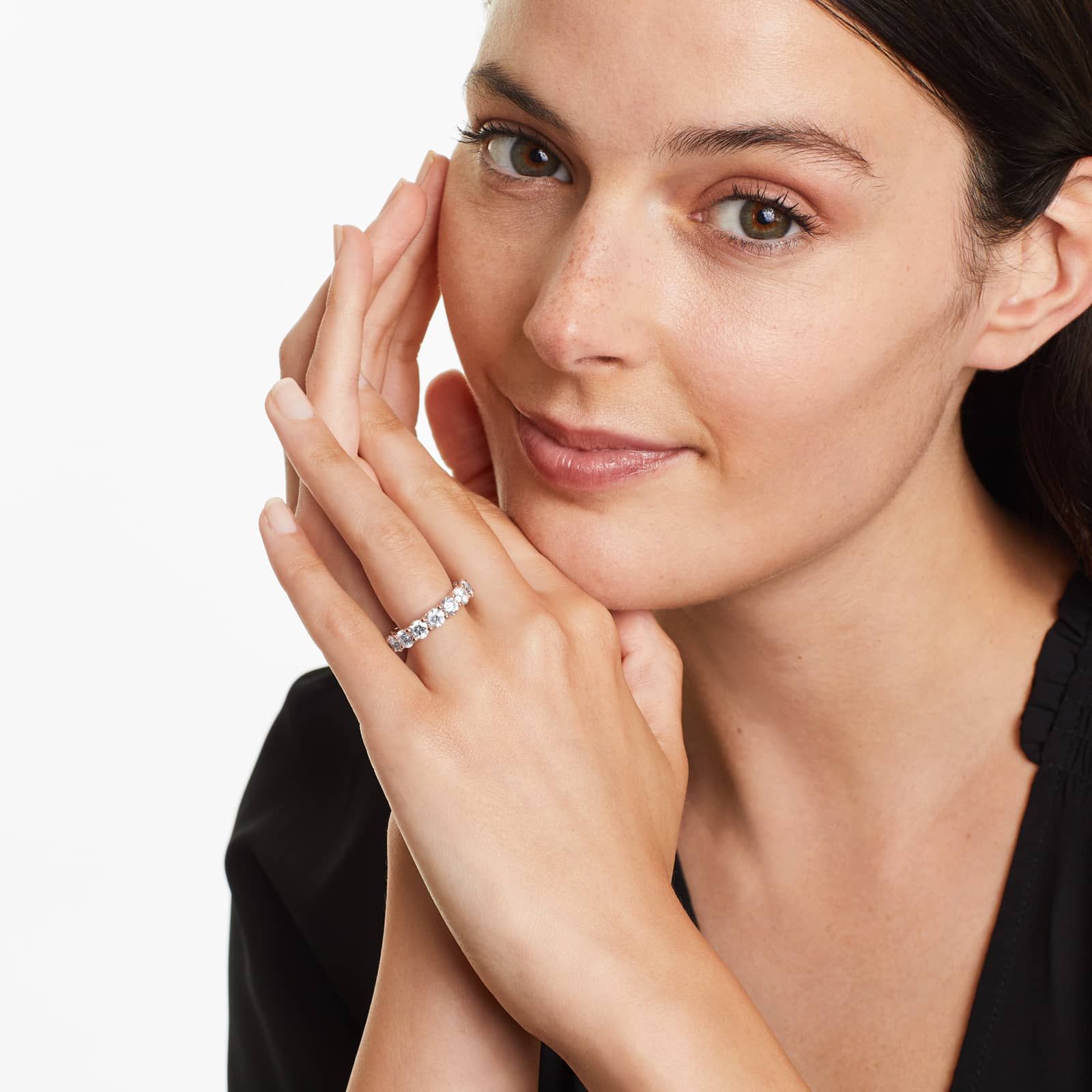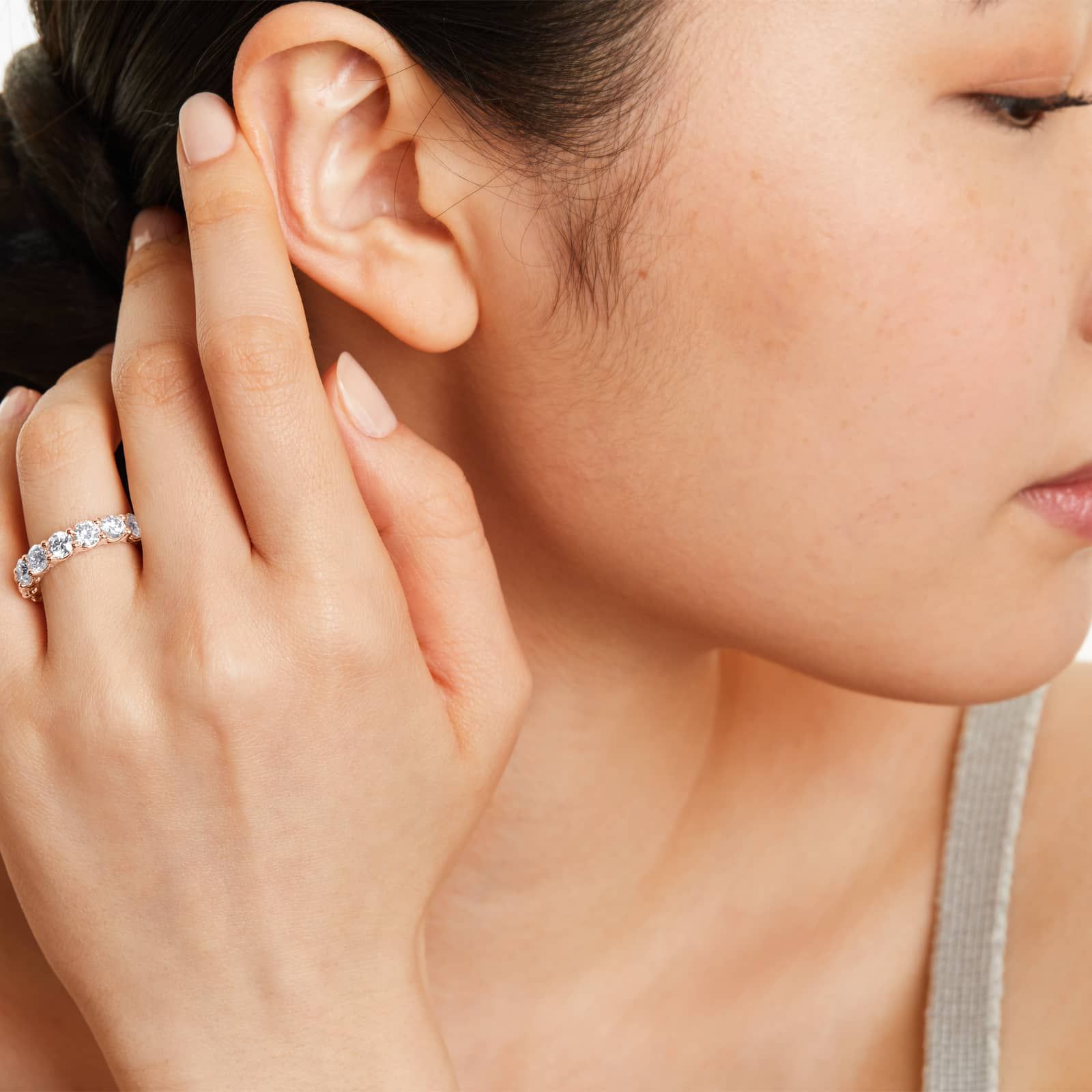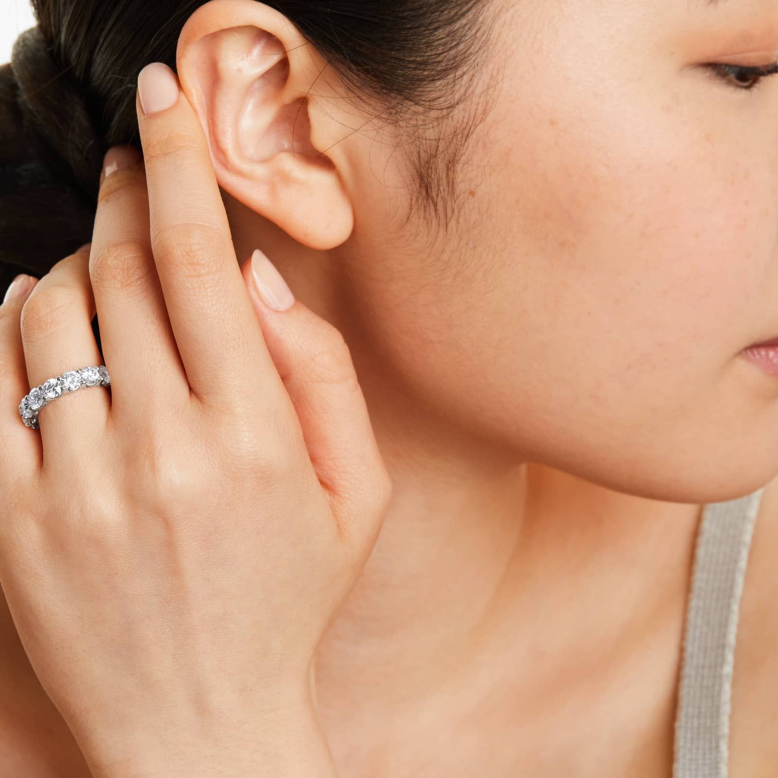 Low Dome Basket Lab Grown Diamond Eternity Ring, EF Color, VS clarity, IGI Certified