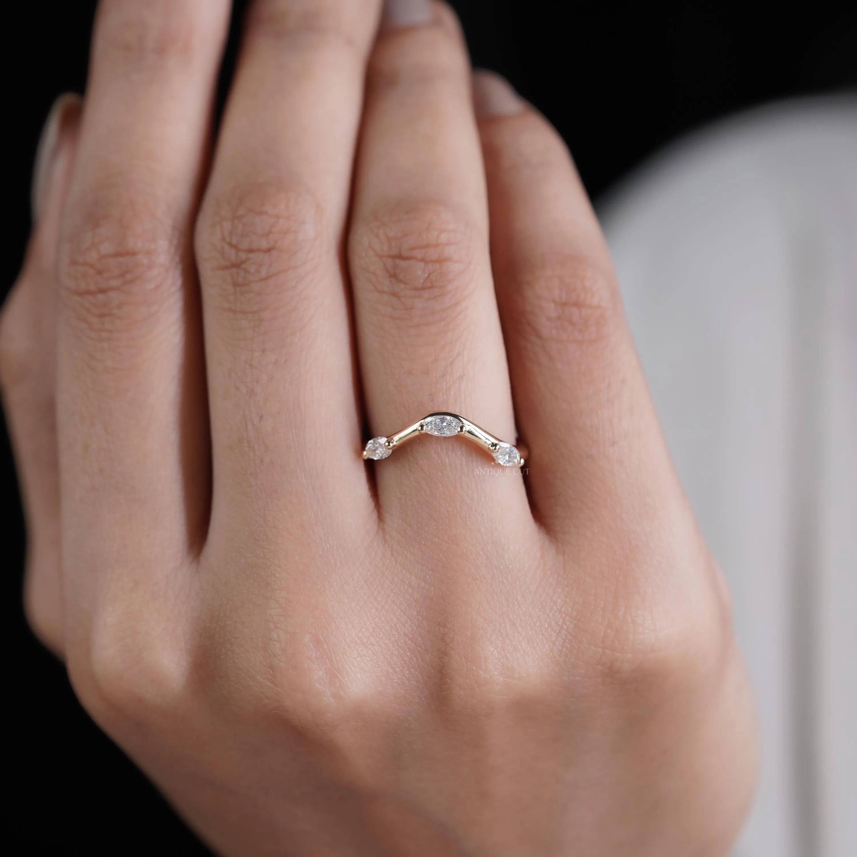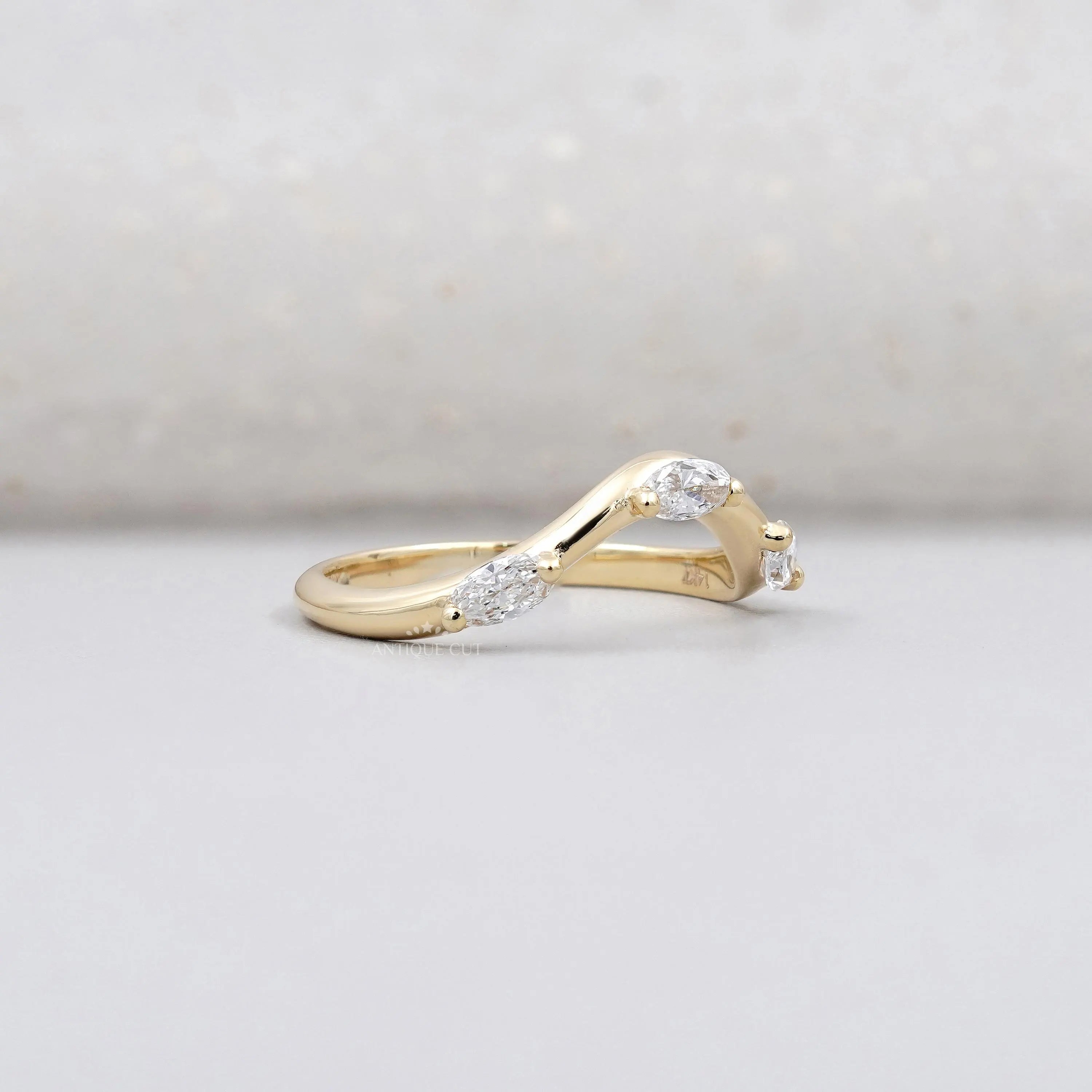 Marquise 0.33tcw Lab Grown Diamond Curved Wedding Band | Chevron Contour Ring | EF Color | VS Clarity