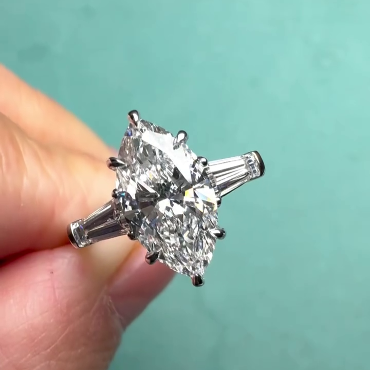 • Elegant 2.00ct marquise center with 0.30ct tapered sides