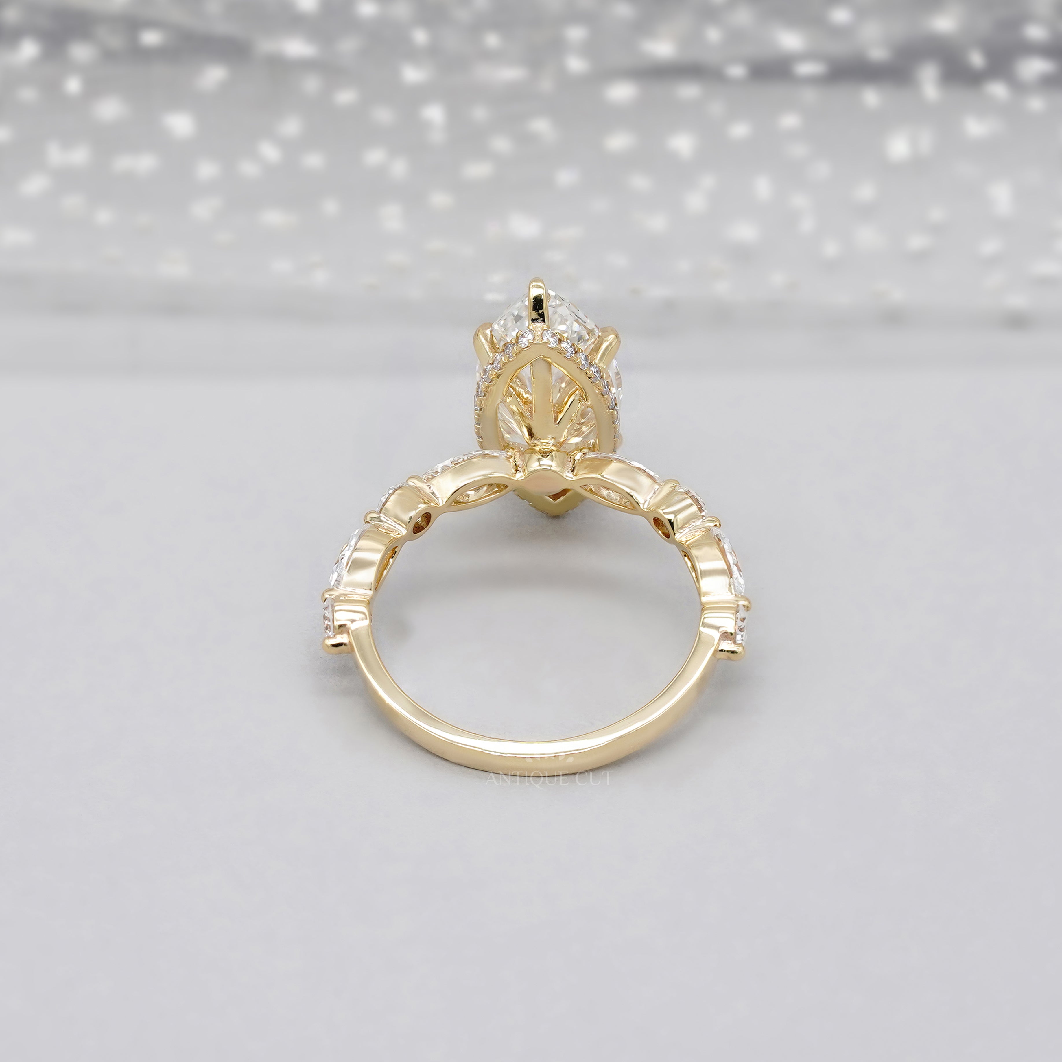 Marquise 4.00tcw Lab Grown Diamond Engagement Ring | IGI Certified | Yellow Gold | Unique Diamond Band