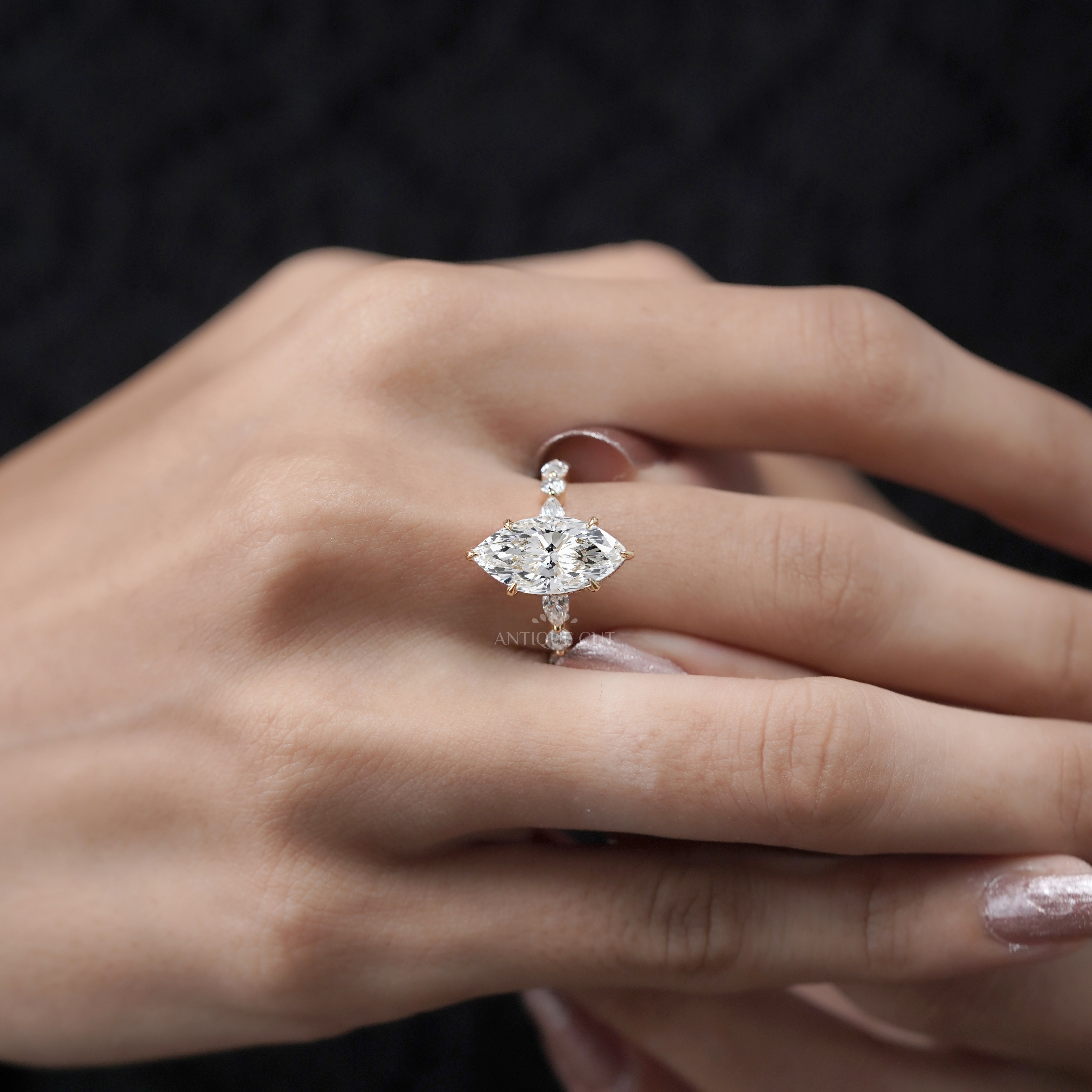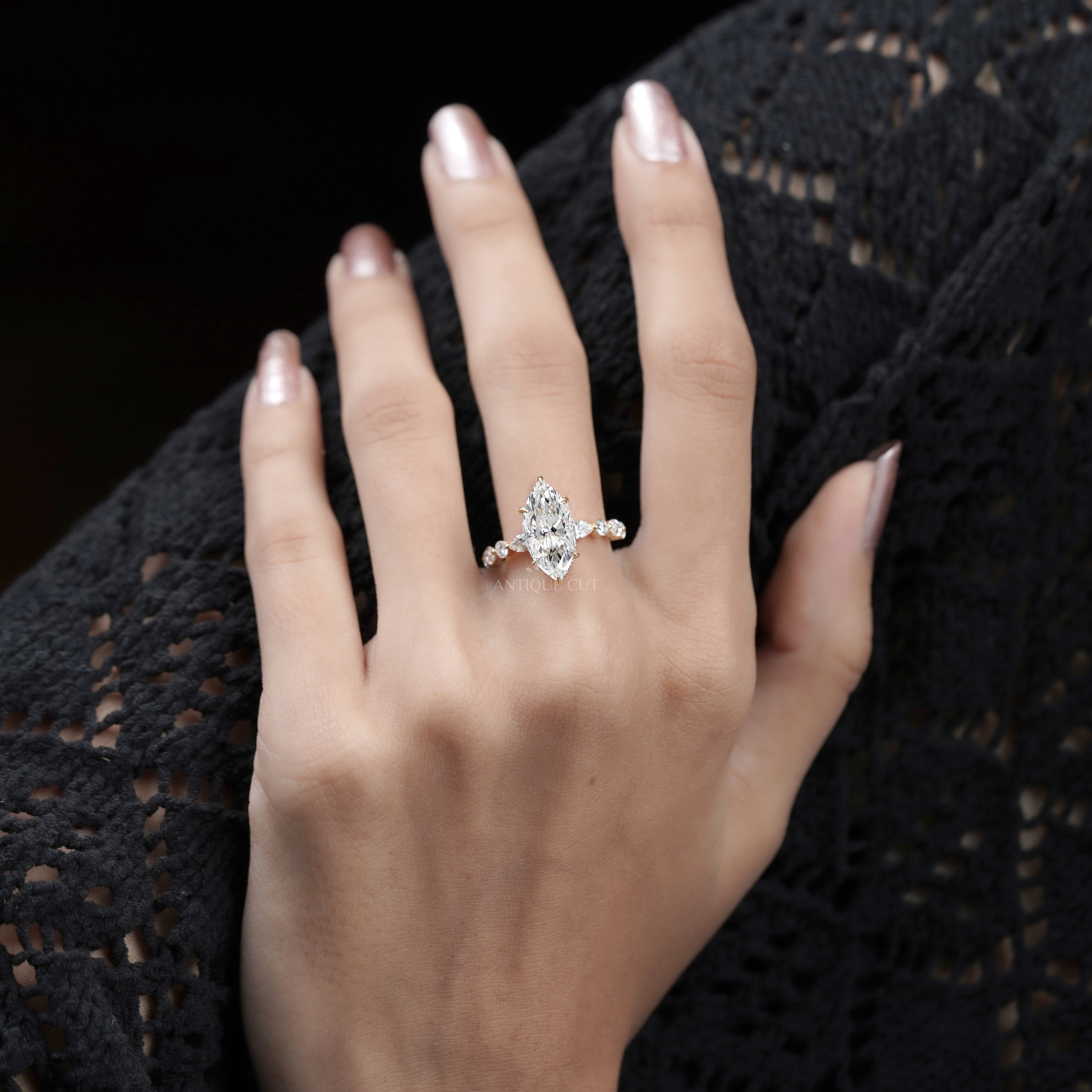 ✓ Brilliant marquise-cut center diamond with exceptional sparkle