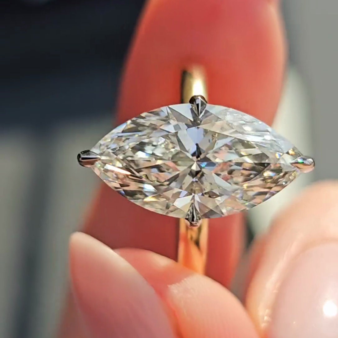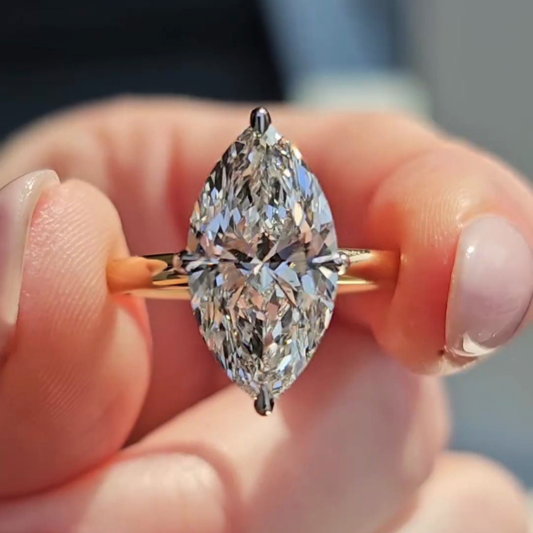 This 3.20tcw marquise lab-grown diamond ring features a 3.00ct center stone with a hidden halo. IGI certified, DβF color, VVSβVS clarity, and handcrafted in two-tone goldβyellow band with white prongs for a modern touch. Ethical elegance at its finest.
