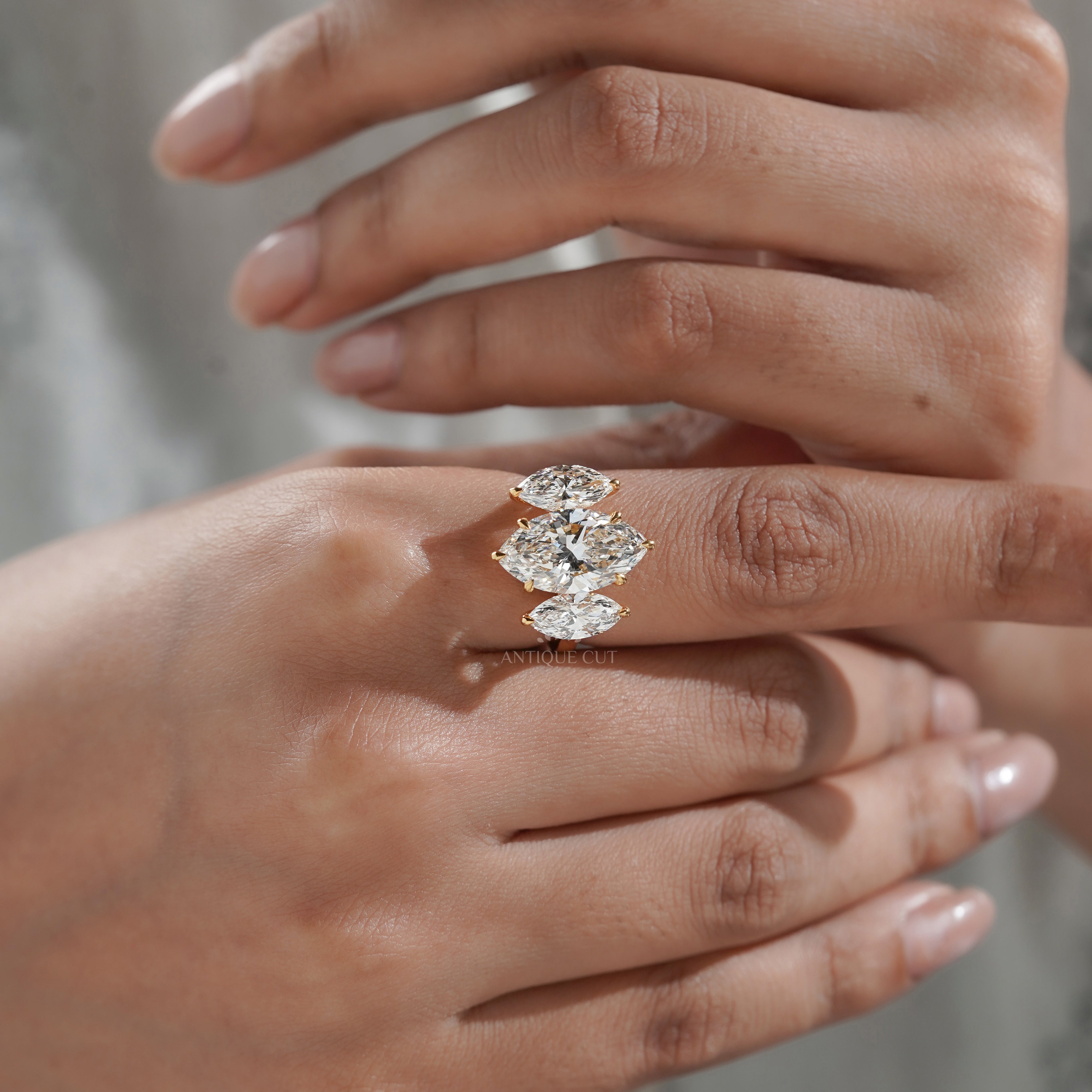 Marquise 5.00tcw Lab Grown Diamond Three-Stone Engagement Ring | IGI Certified