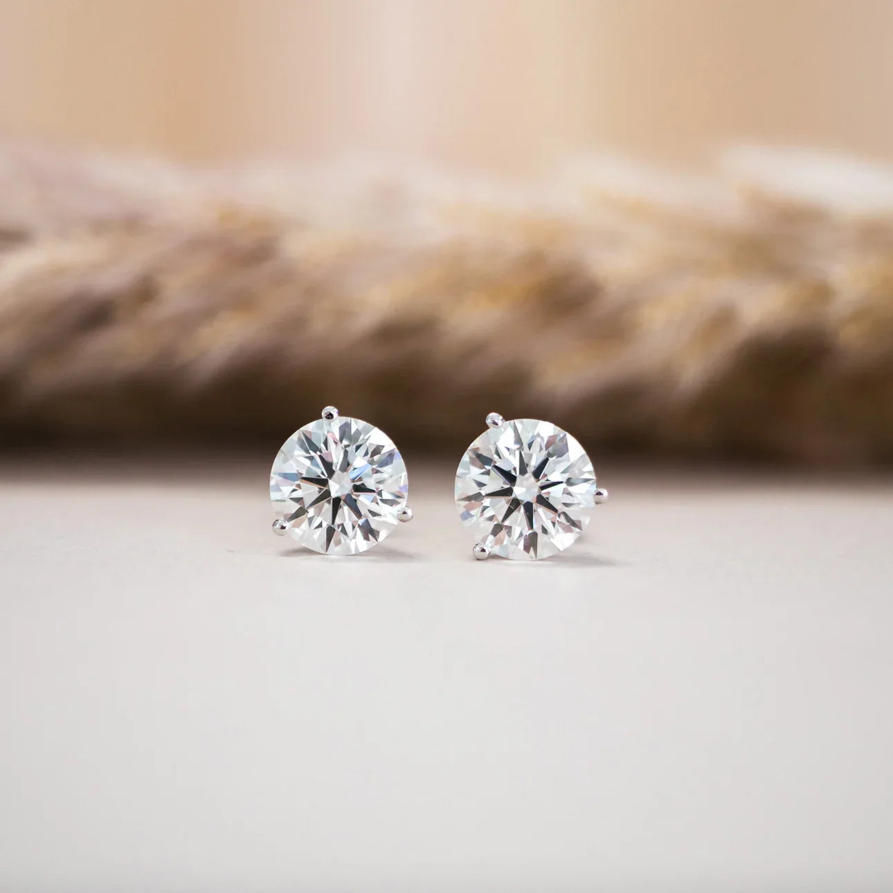 Round Lab Grown Diamond Martini Three Prong Stud Earrings, EF Color, VS Clarity, IGI Certified