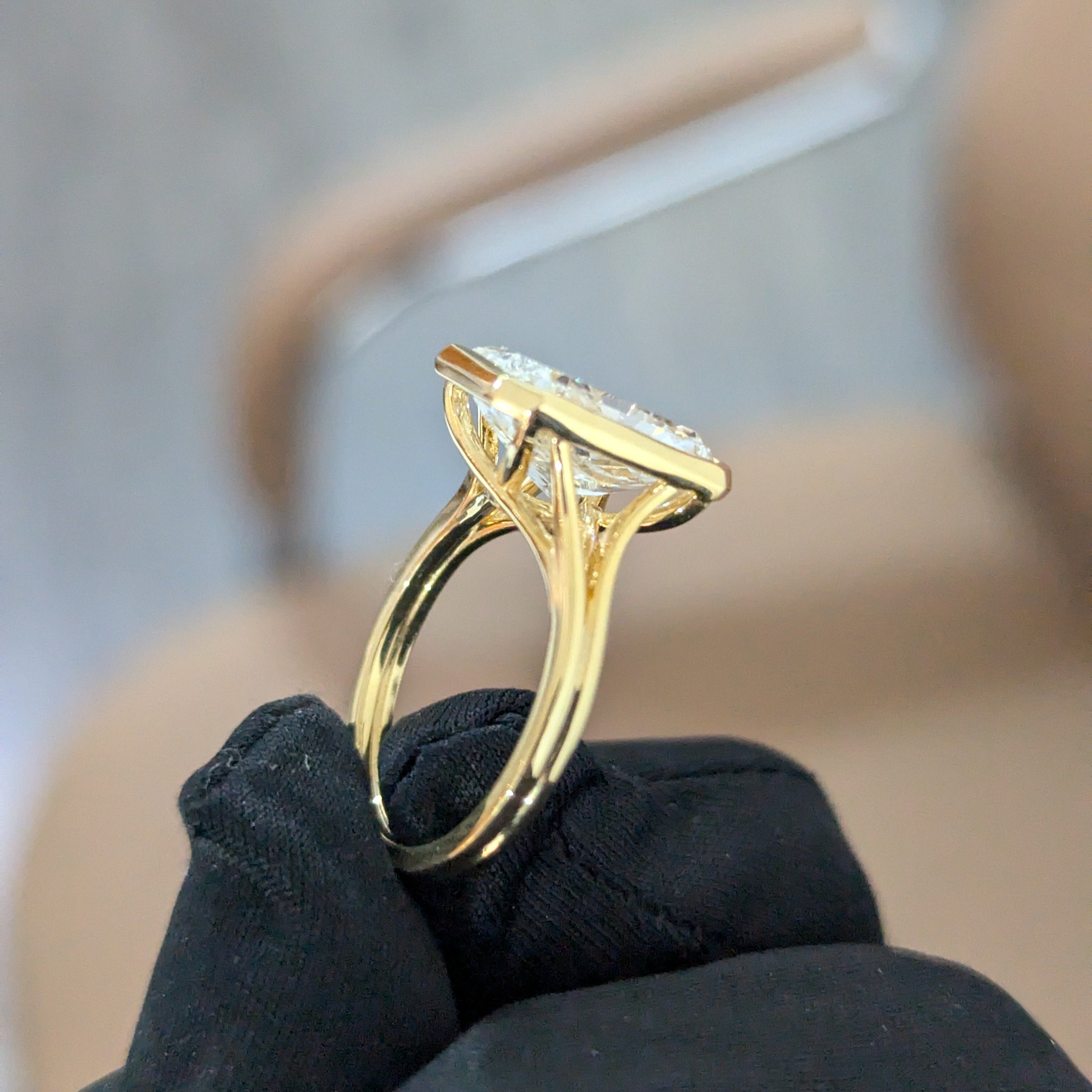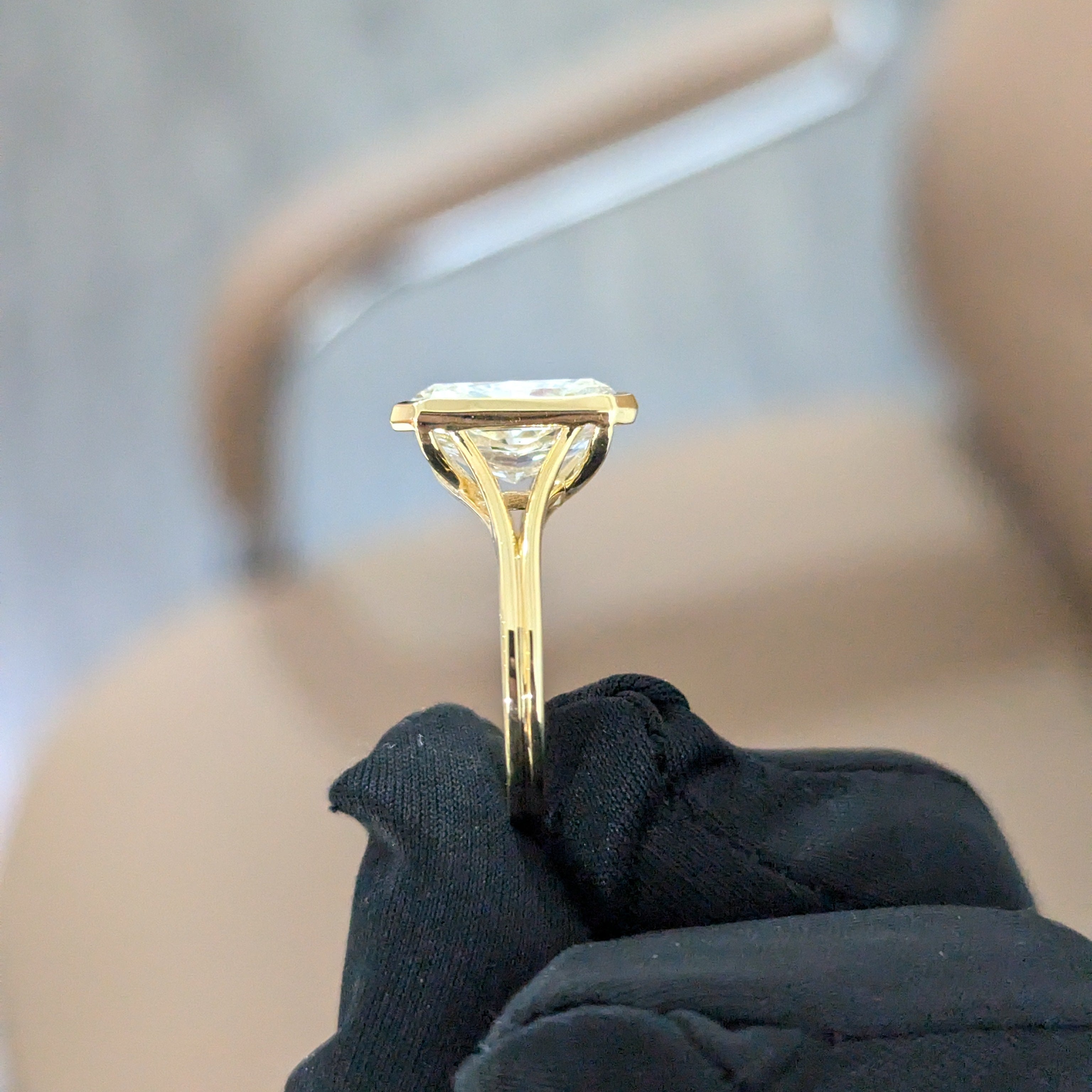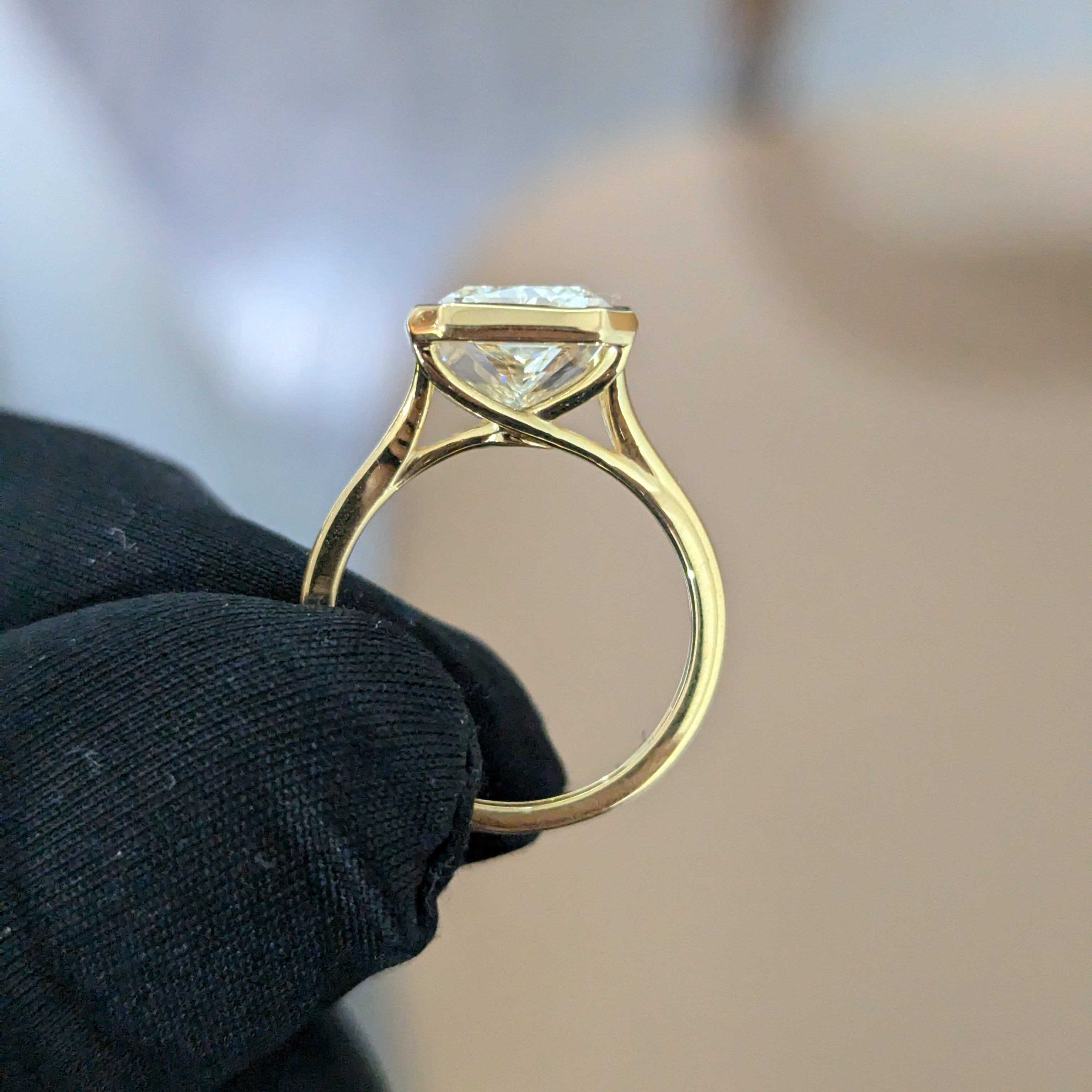 Modern 4.00ct Radiant Lab Diamond Ring | Bezel Cathedral Setting | IGI | Ethical Gold