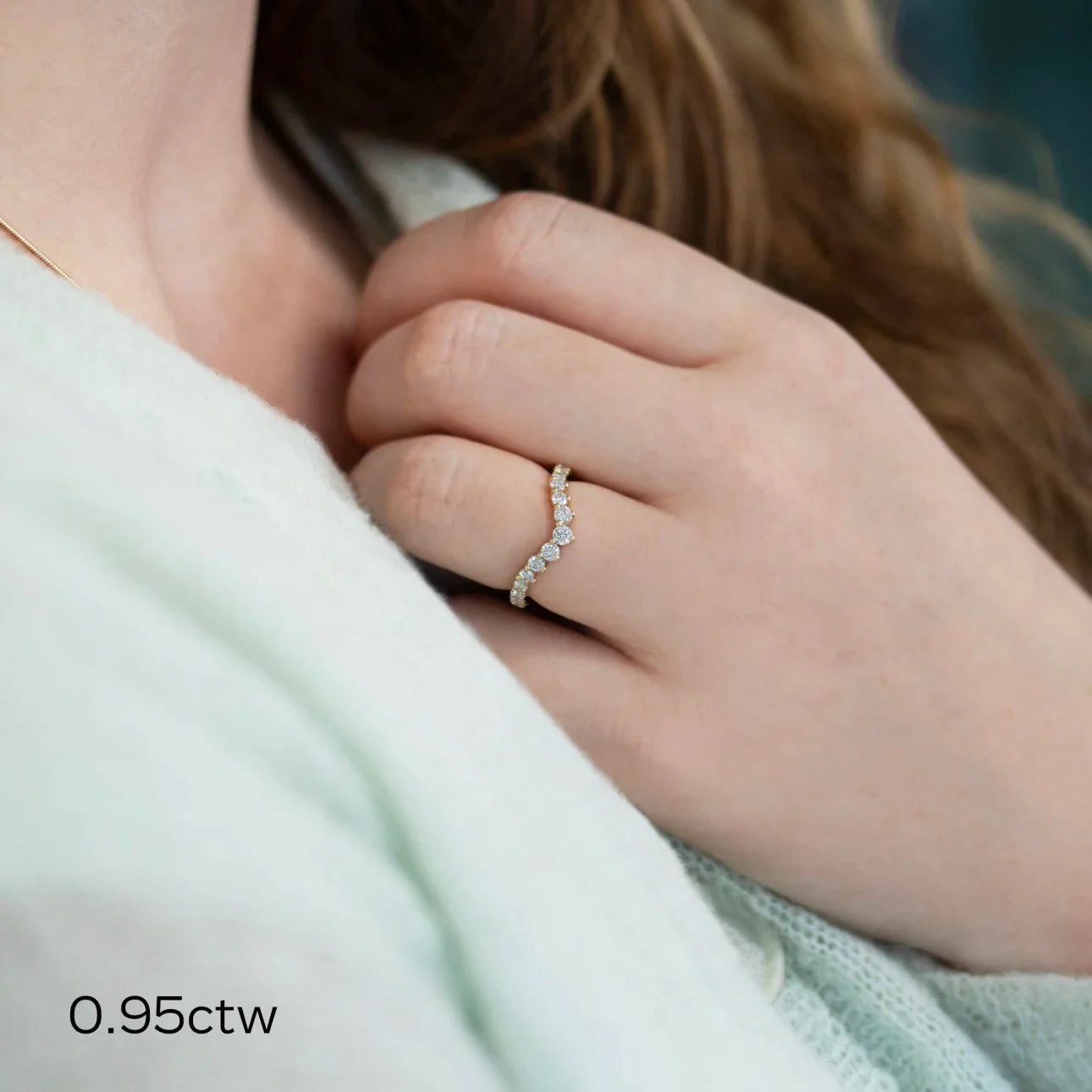 This Round Lab Grown Diamond Nesting Eternity Band showcases EF color and VS clarity with an IGI certification. A stunning choice for those seeking a conflict-free, eco-friendly and scientifically identical diamond alternative. Enjoy the beautiful sparkle of a natural diamond without any ethical concerns.