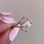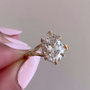 ✓ Features a 1.50ct Oval center stone in DEF color, VVS–VS clarity