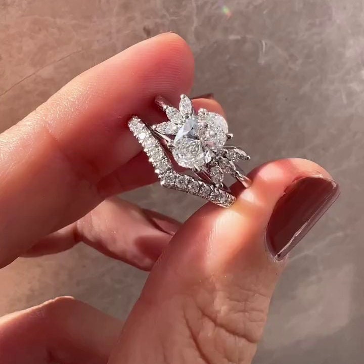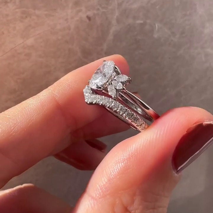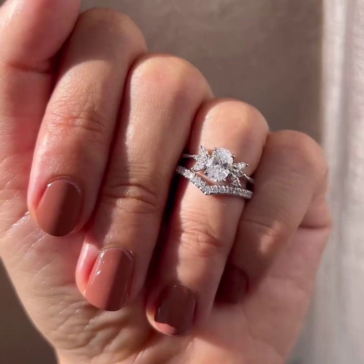 ● Unique marquise side stones add brilliance
