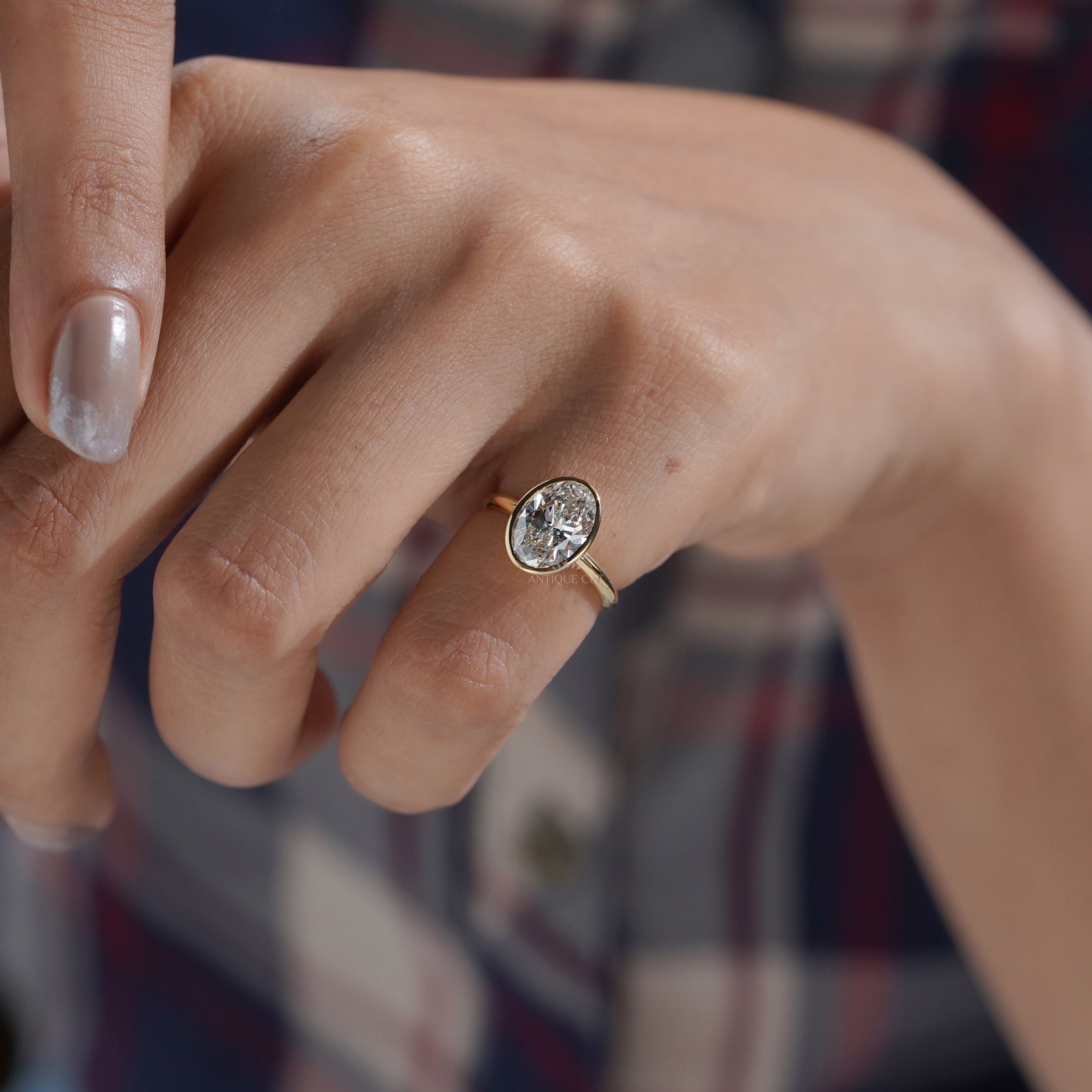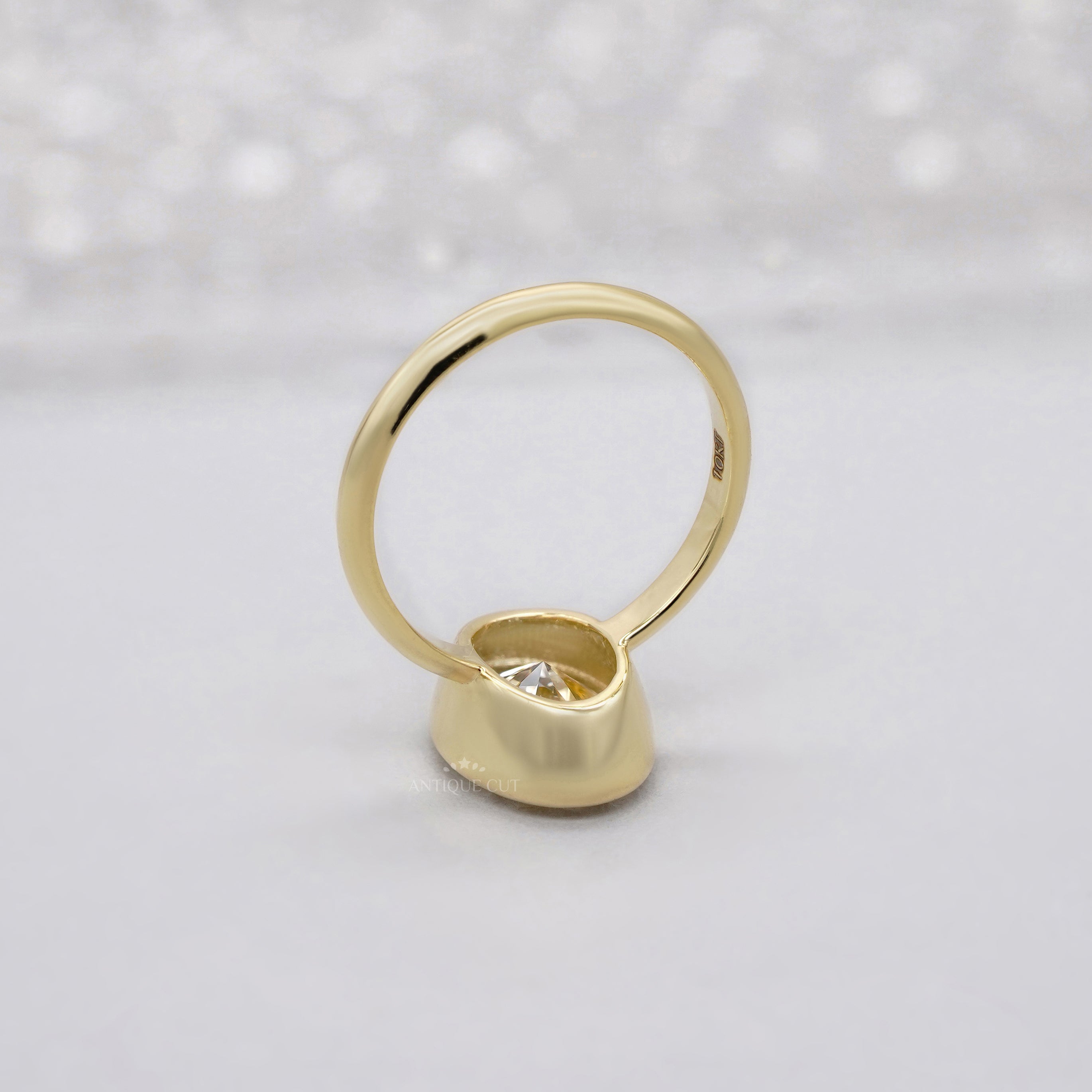 The bezel setting enhances the diamond’s brilliance while offering a smooth, secure, and modern finish.
