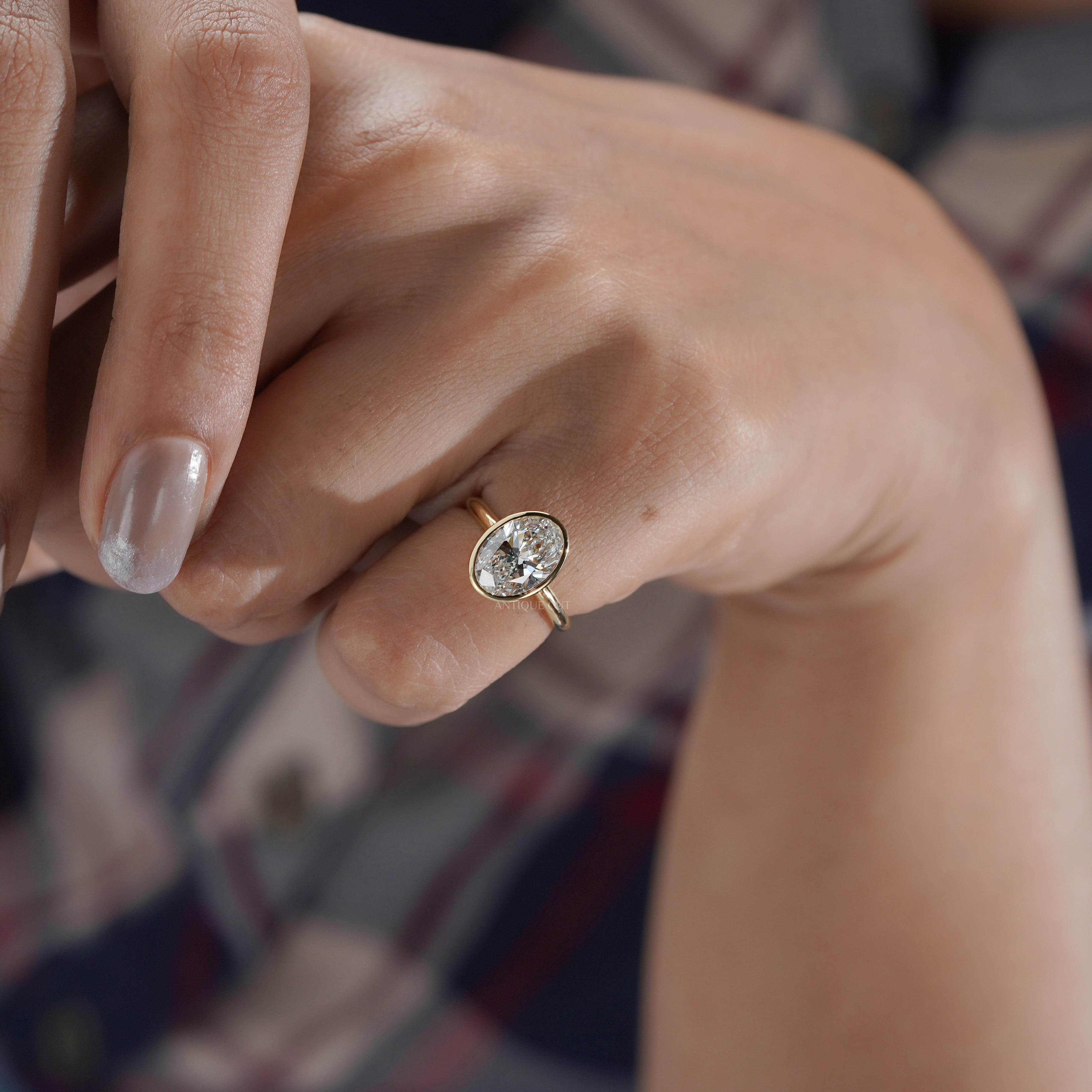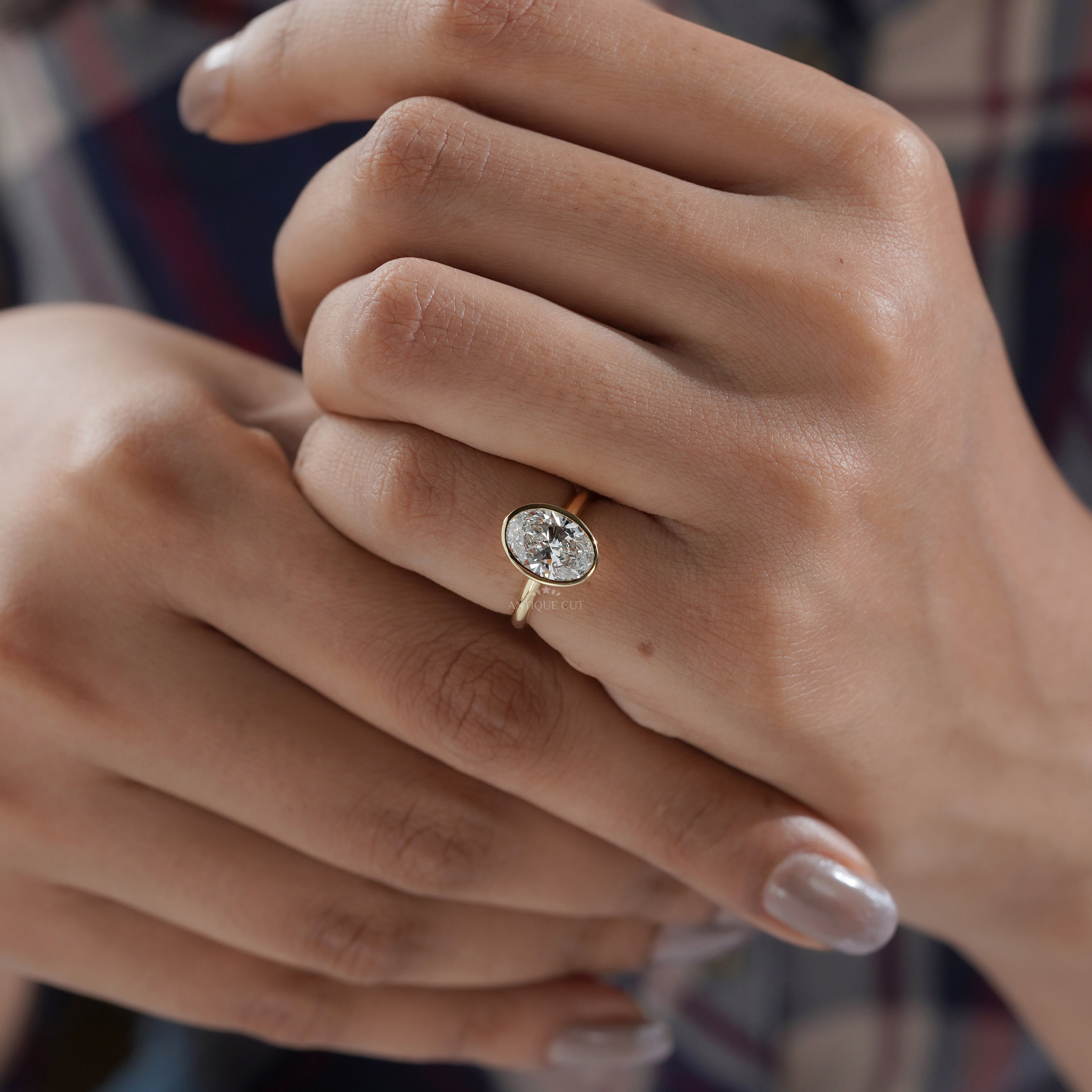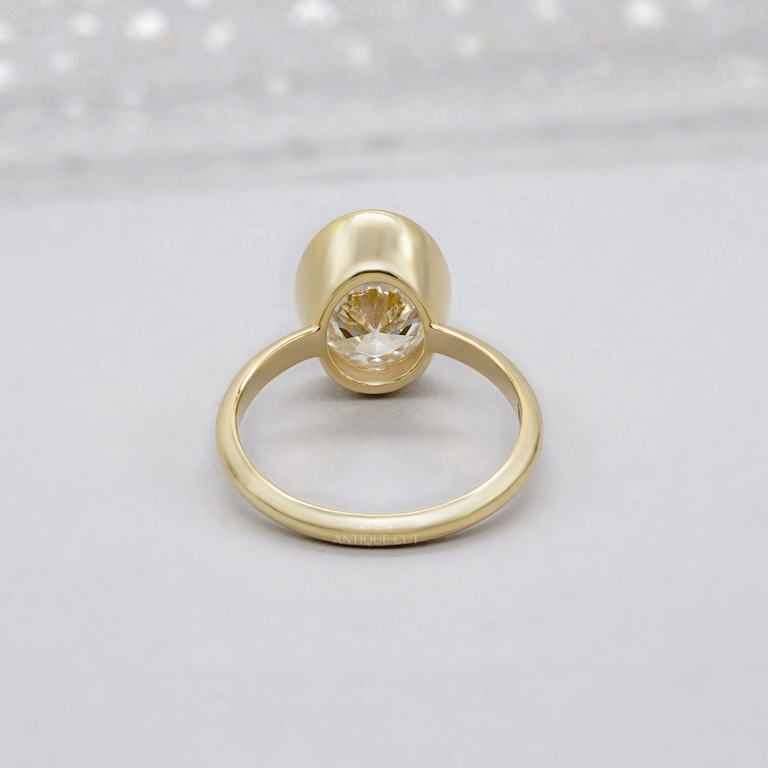 • Sleek bezel-set oval diamond for a refined, secure design
