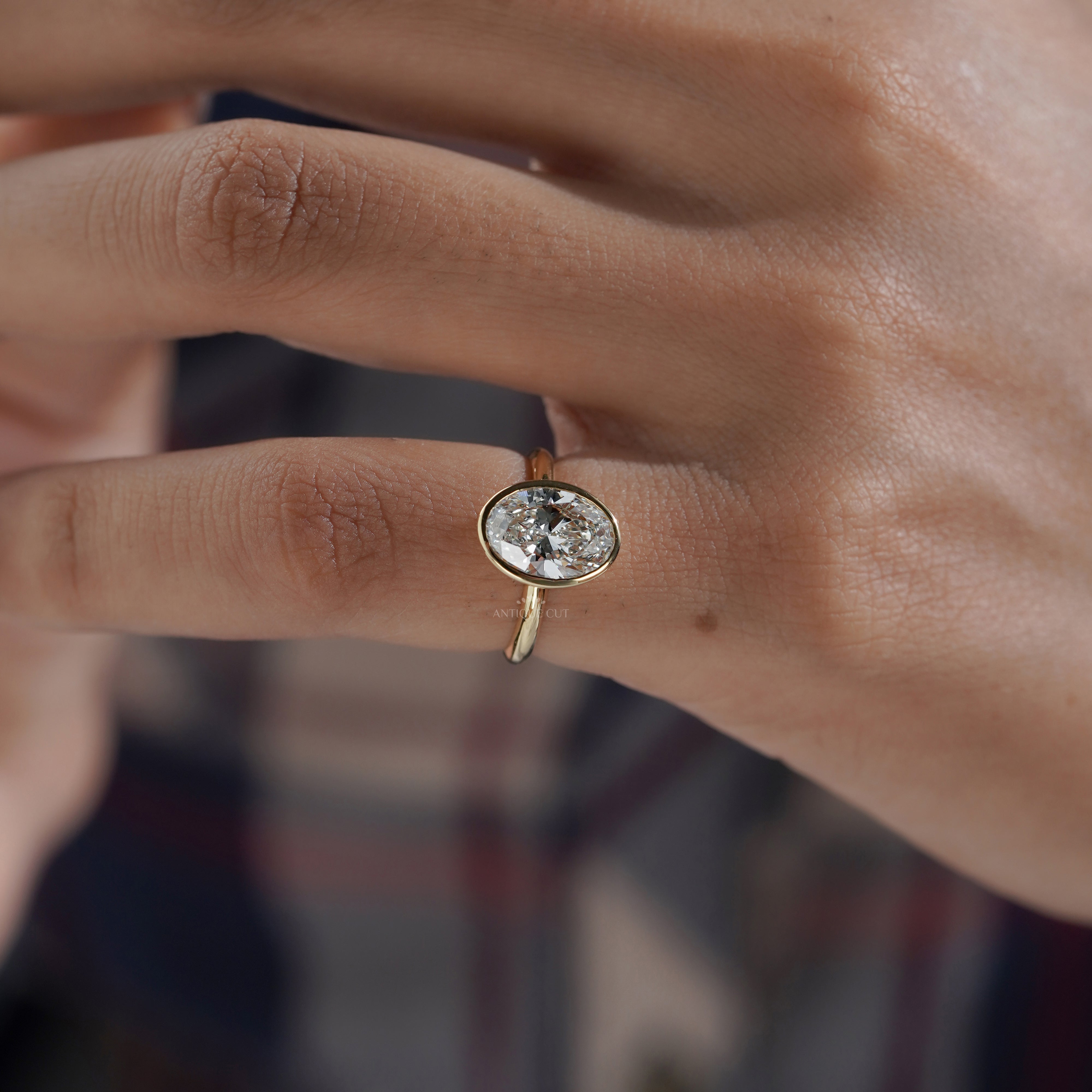 Oval 2.00ct Lab Grown Diamond Bezel Set Engagement Ring in Yellow Gold | IGI Certified