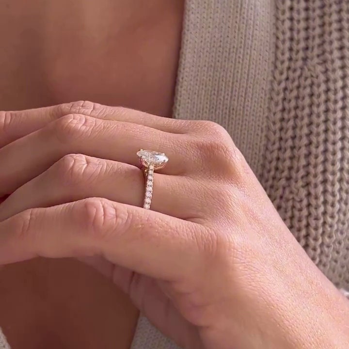 Timeless 2.00tcw Oval Lab-Grown Diamond Engagement Ring with 1.50ct center and 0.50ct pave side stones. Set in rose gold cathedral style, IGI certified, DEF color, and VVS–VS clarity. A sustainable and elegant symbol of your forever love.
