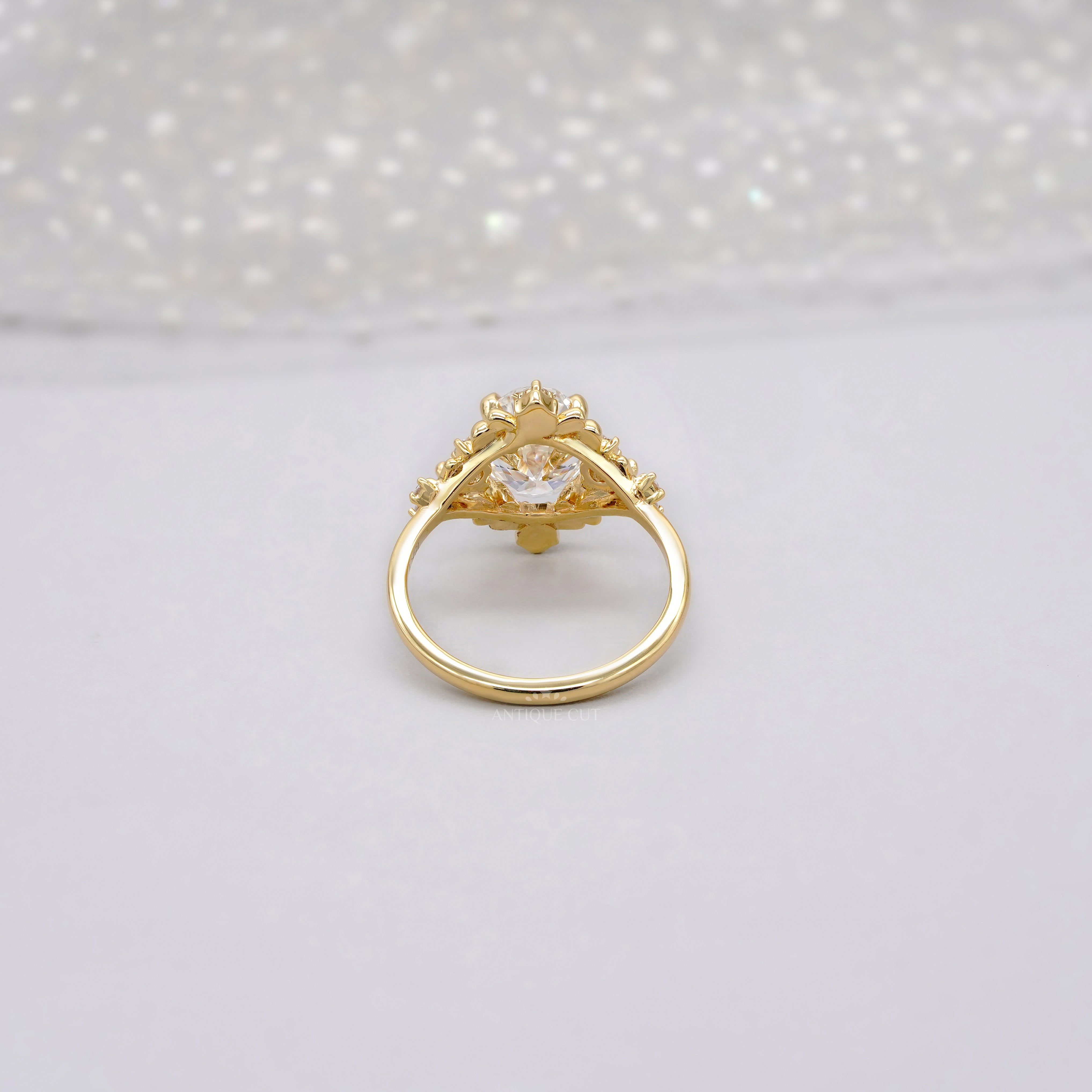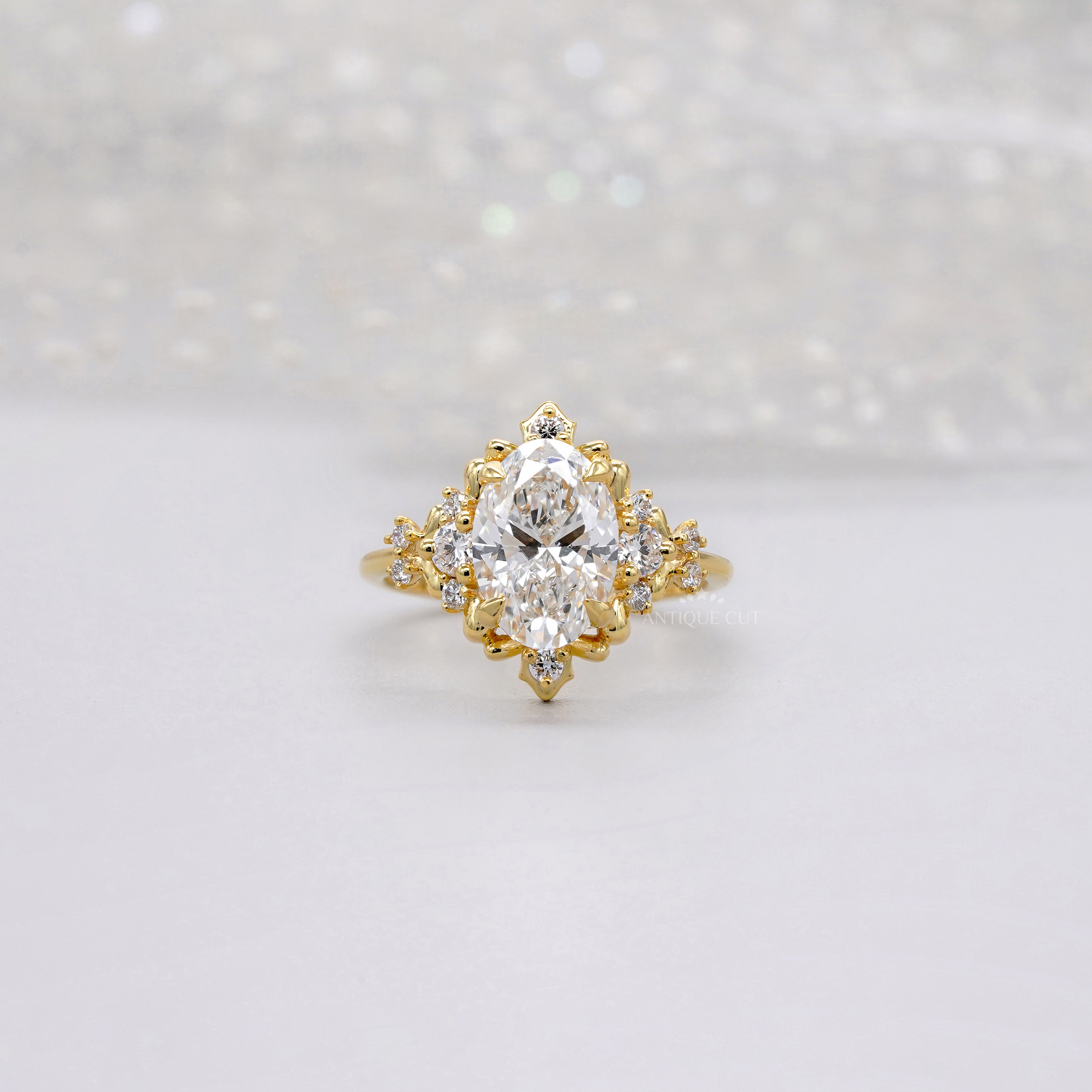 2.30tcw Oval Lab Diamond Floral Halo Ring | Vintage-Inspired Yellow Gold | IGI Certified