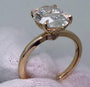 This 2.70tcw oval lab-grown diamond ring features a 2.50ct center stone with a hidden halo for added brilliance. IGI certified, D-E-F color, VVS–VS clarity, and handcrafted in white gold — a timeless yet modern solitaire for elegant brides.