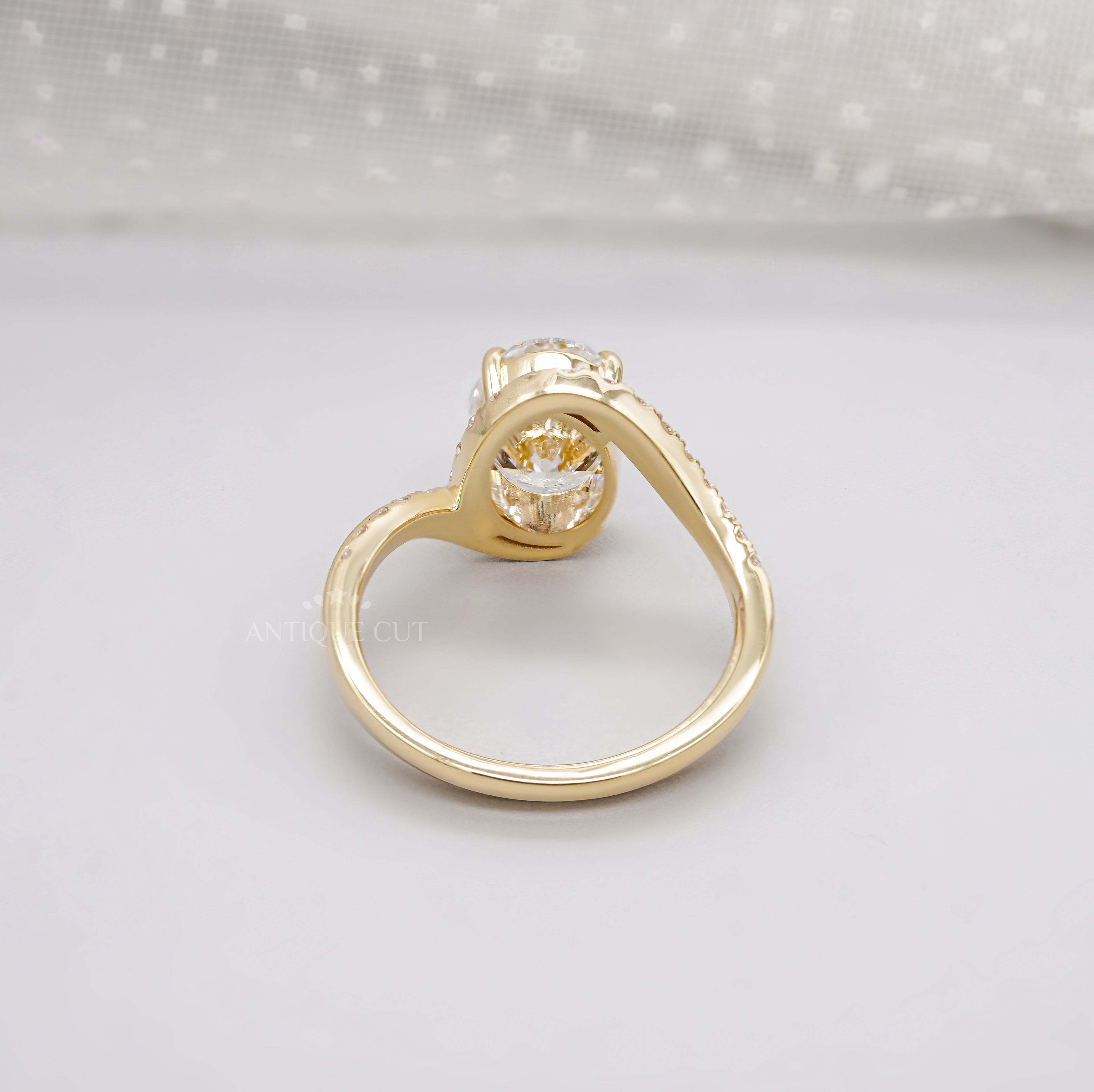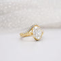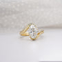 This stunning 2.80tcw Lab Grown Diamond Ring features a 2.50ct oval center with a 0.30ct matching curved band. Designed in a graceful bypass style and accented with pavé diamonds, it’s IGI certified and handcrafted in 14k or 18k gold — a bold and elegant modern statement.