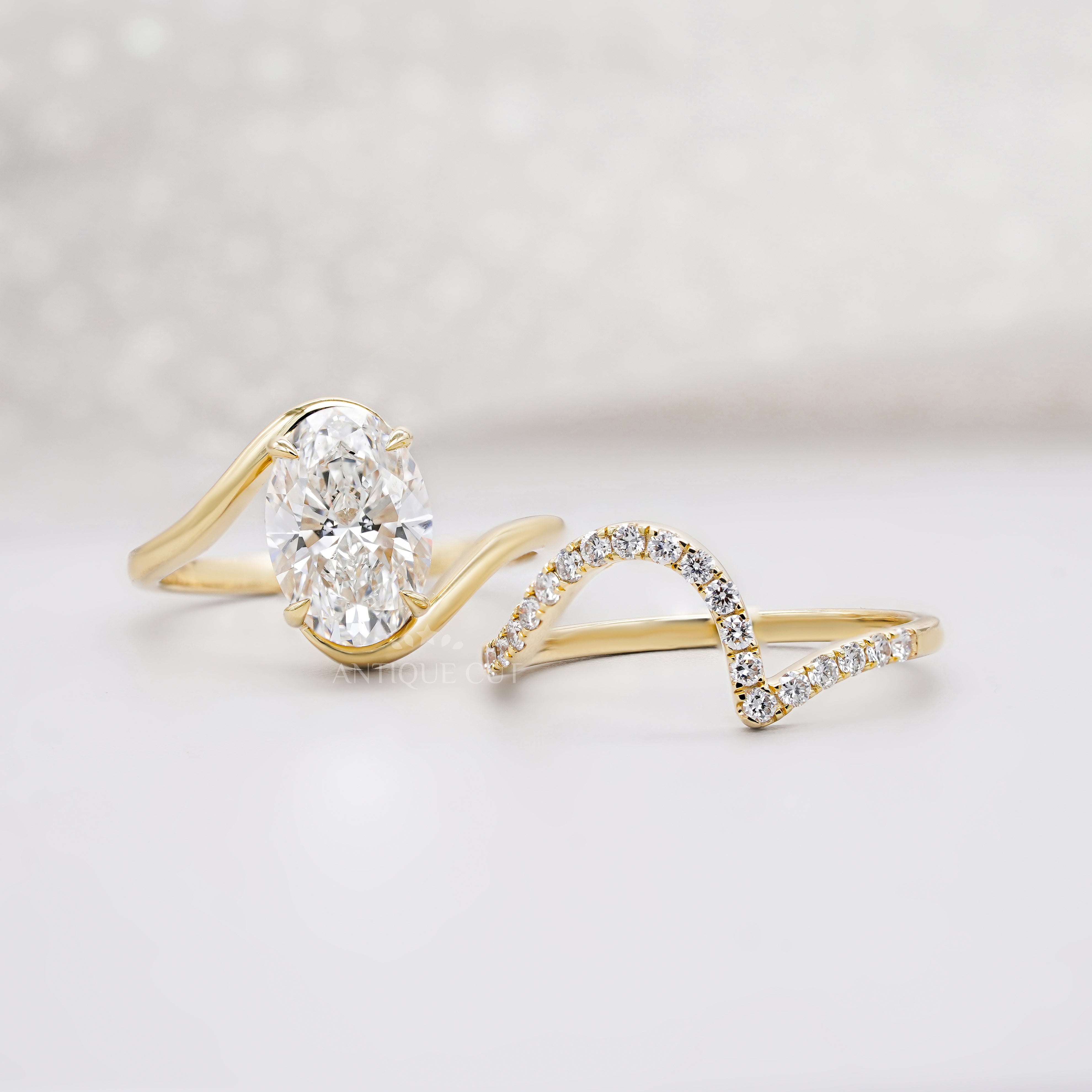 2.80tcw Oval Lab Diamond Bypass Style Engagement Ring | Matching Curved Band | IGI Certified