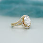 • Striking 3.00ct oval center stone paired with a sparkling pavé band