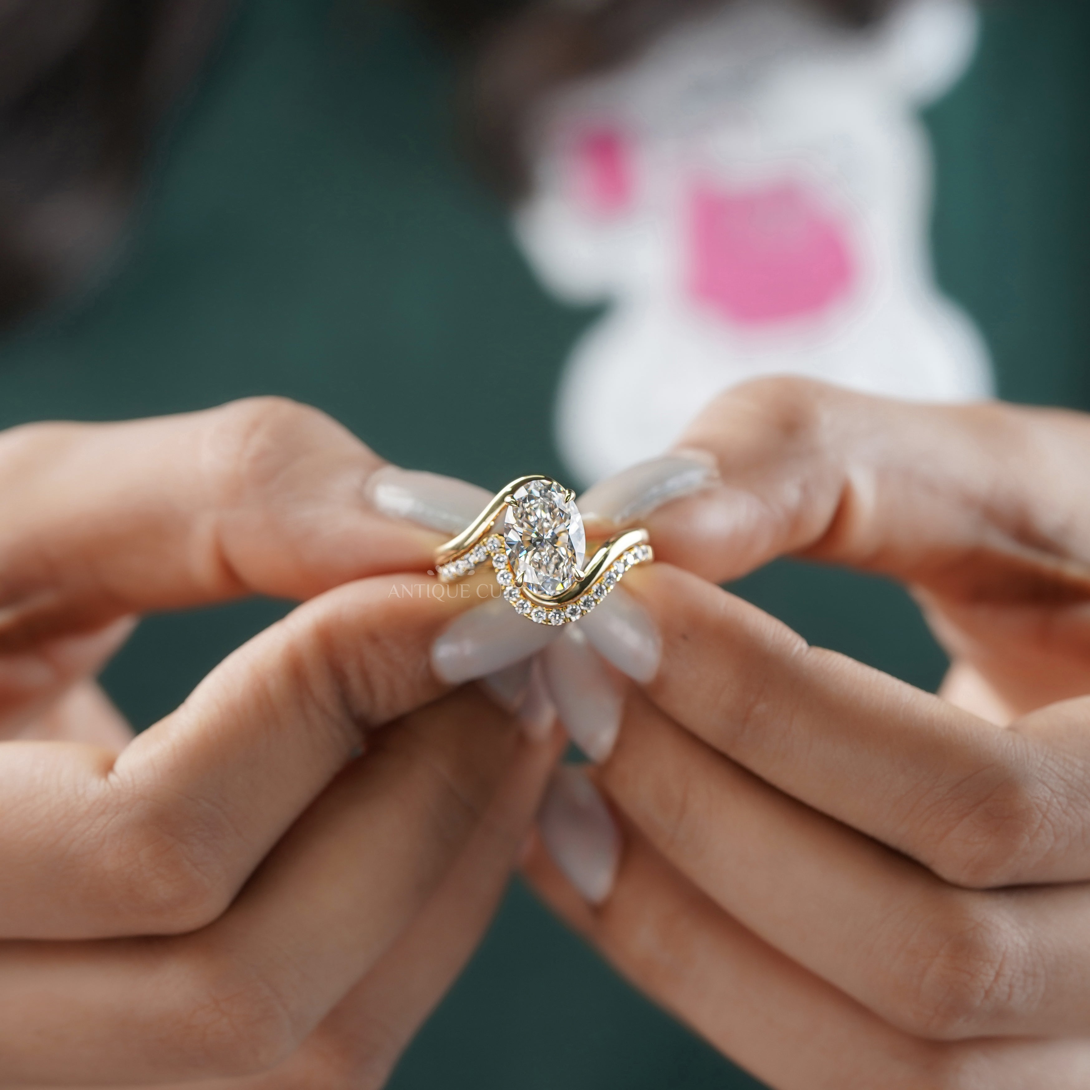 Modern Curve 3.20tcw Oval Lab Diamond Engagement Ring | Matching Curved Band | IGI Certified
