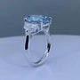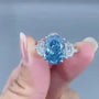 Capture attention with this 5.00tcw Blue Oval Lab-Grown Diamond Three-Stone Engagement Ring.
