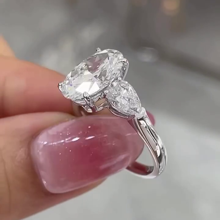 • 4.00ct oval center + 1.00ct pear side diamonds